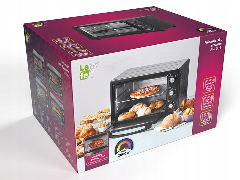 lafpie46772 Электрическая печь 50l Lafe Piw-005; Вы любите домашнюю выпечку, но на вашей кухне нет места для классических крупных зданий? Это не означает, что вы должны отказаться от своих любимых блюд, достаточно электрической печи Lafe, что предлагает расширенные возможности для приготовления различных блюд. Lafe Poven быстро нагревается и равномерно распределяет огонь. Установите его там, где вы хотите, и выпейте! • емкость 50 L. • Максимальная мощность 2000 Вт. • Освещенный интерьер. • Горячий воздух. • контроль температуры. • Роторная сплетен • Регулируемый термостат. : Две выпечки на одном камне; Большая вместимость устройства LAFE, до 50 литров, позволит вам приготовить до в два раза больше блюд, чем в стандартной мини -духовке. Набор включает в себя решетку и противень, так что вы можете испечь на двух уровнях сверху и снизу. Как и традиционные печи, высота лотков регулируется, что облегчает регулировку интерьера устройства LAFE к конкретному блюду, которое вы намереваетесь приготовить в нем. Удобство и универсальность; Максимальная мощность, которую вы устанавливаете в духовке, составляет целых 2000 Вт, что позволит вам легко приготовить пиццу, вкусные дрожжи или ароматическую курицу на ужин. Широкий диапазон регулировки температуры (60-240 ° C) означает, что духовка LAFE-это действительно универсальное устройство, которое вы будете использовать его для сушки грибов, приготовления любимого теста или выпечки, а также для запекания домашнего хлеба. Идеально приготовленные блюда; Мини -духовка Lafe может смело конкурировать с классическим кухонным оборудованием. Благодаря функции горячего воздуха, горячий воздух распределяется равномерно в камере устройства, заботясь о блюдах точно с каждой стороны. Вам больше не нужно беспокоиться о том факте, что жаркое аппетитное жаркое окажется сырым в середине устройства LAFE, которому вы можете доверять. Вы хотите приготовить изысканный гусь к семейному ужину? Используйте вращающийся угол, прикрепленный к духовке. Этот вариант позволит вам приготовить идеально запеченное мясо в традиционном, угловом, а также на гриле. Удобство прежде всего; Печь Lafe - это не только функциональное устройство, но и простое и удобное в использовании. Во время работы выделяется интерьер устройства, что позволит вам управлять процессом подготовки проблемной выпечки, например, дрожжевого теста. Устройство оснащено таймером, поэтому вы можете сосредоточиться на других классах, когда дело доходит до конца, духовка автоматически отключится и сообщит вам об этом, используя звуковой сигнал. Кроме того, управляющая лампа сообщит вам о состоянии устройства, благодаря которому вы всегда узнаете о возможном сбое во времени.