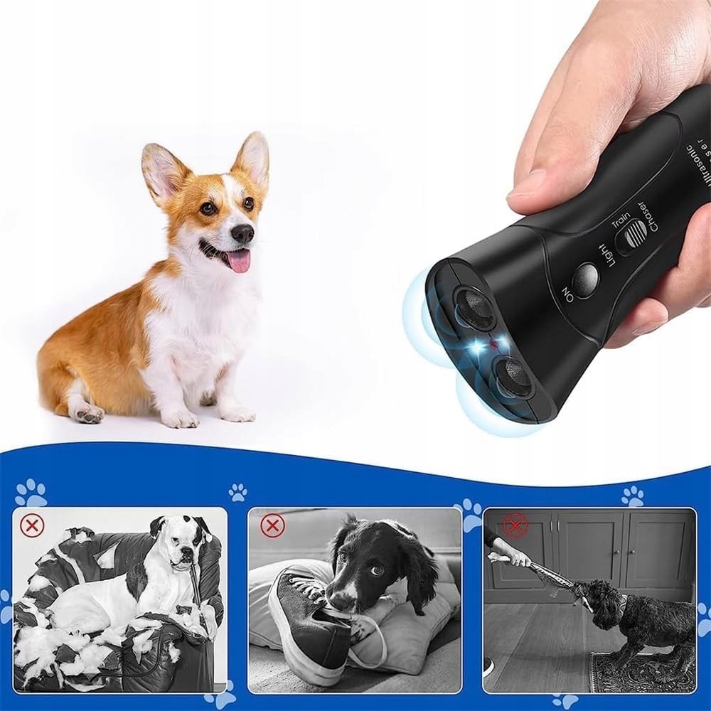 - Учебное устройство: помогает в тренировке собак, устраняя нежелательное поведение, такое как лай, копание, кусание или царапина. Ультразвук стимулирует нервную систему собаки, помогая владельцу в обучении животного.