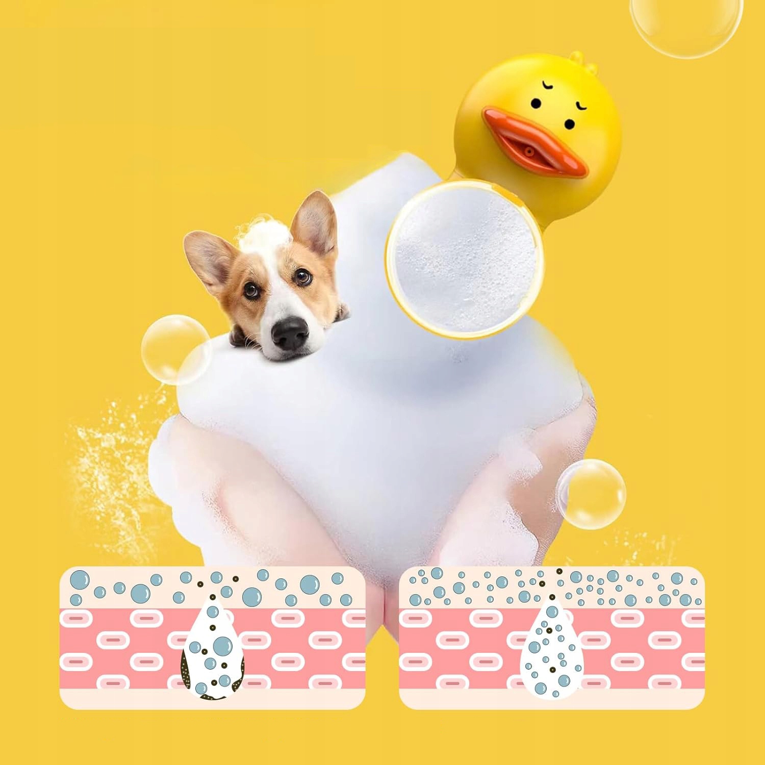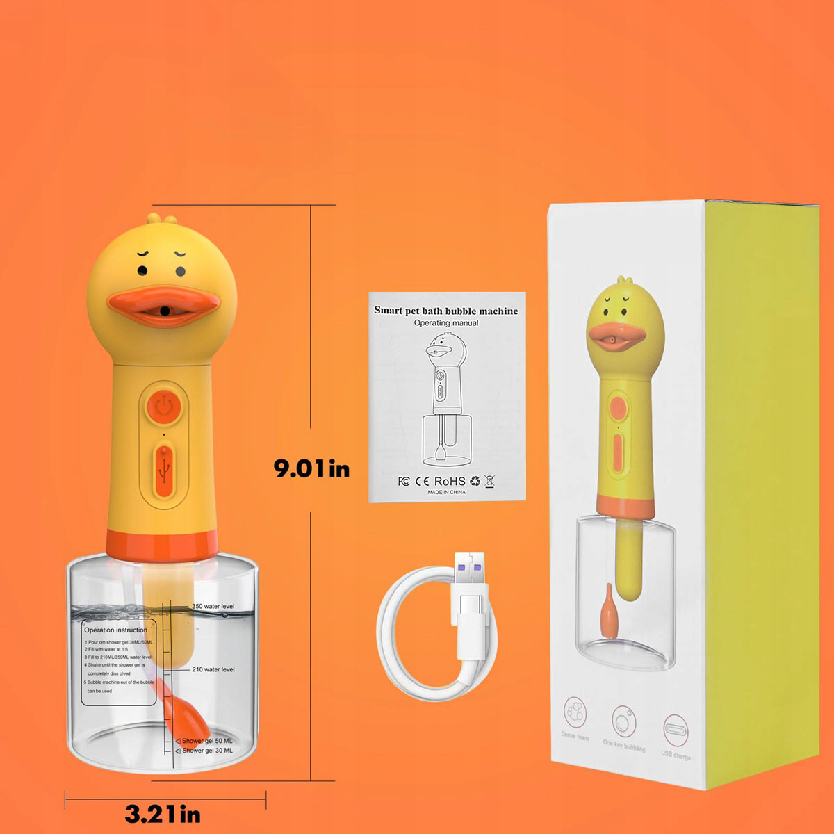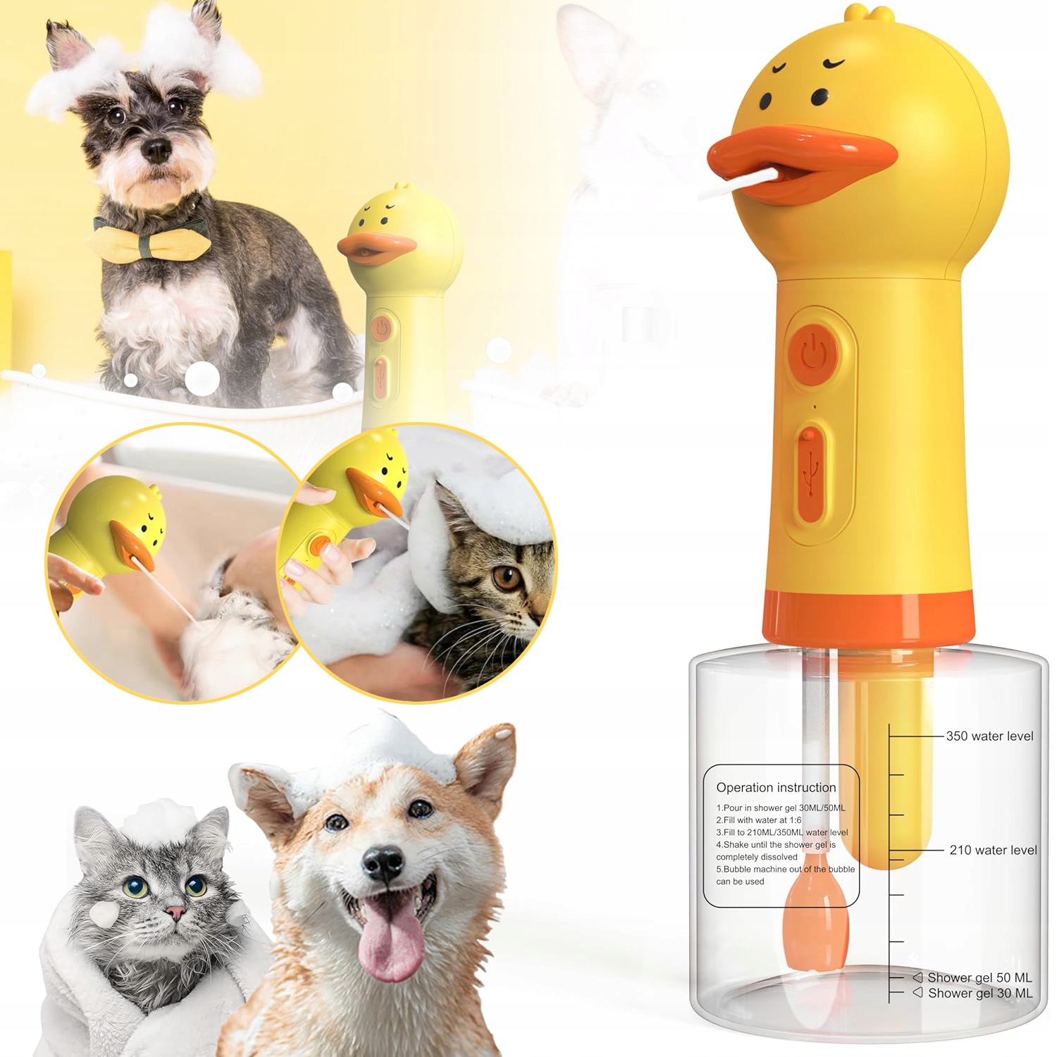 ✅✅ 【Толстая пена】 Электрическая пена диспенсера для домашних животных имеет очаровательную форму - сладкая маленькая желтая утка с способностью 350 мл. После включения устройство автоматически распыляет густую пену, благодаря которой ваше животное может легко насладиться ванной!