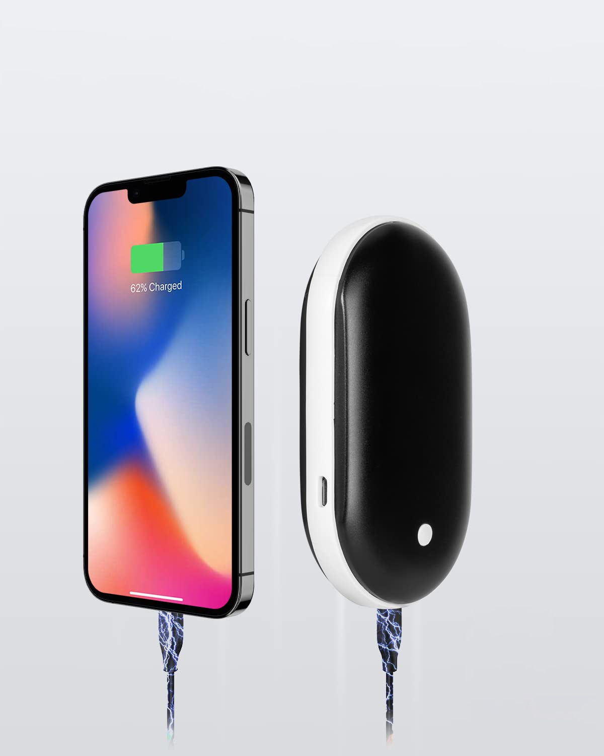 - Большая емкость сохраняет ваши руки в тепле 4–8 часов и заряжает телефон 2–3 раза.