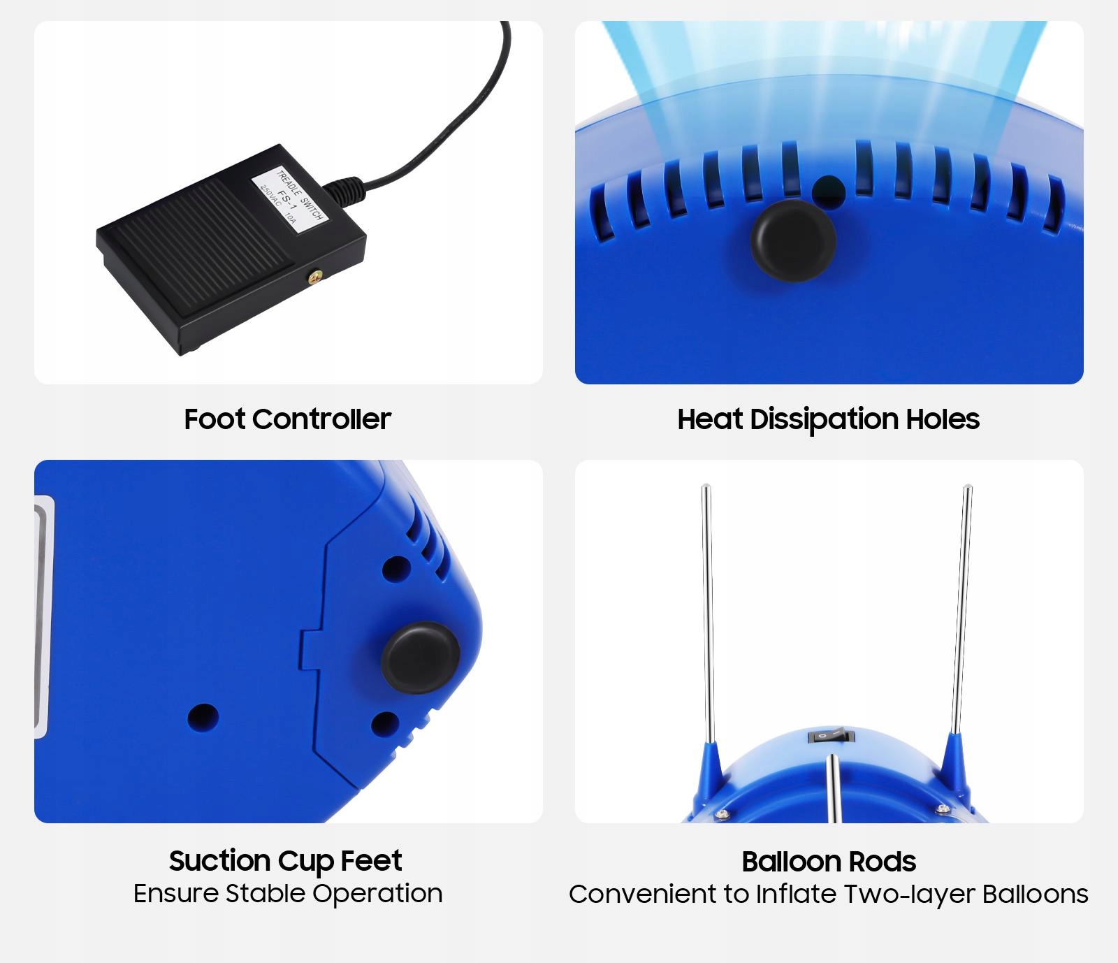 длительный срок службы: продукт изготовлен из ABS высочайшего качества с процессом литья инъекционного литья, который может иметь высокую прочность, коррозионную стойкость, сопротивление ржавчине и сопротивление потреблению, обеспечивающей длительный срок службы. Способен обеспечить давление 3-3,5 фунтов на квадратный дюйм и прочность на ветер 132,09 галлонов/мин, что может помочь быстро накачать воздушные шары через несколько секунд. Кроме того, продукт также оснащен двумя инфляционными портами, которые могут одновременно надувать два воздушных шара.
