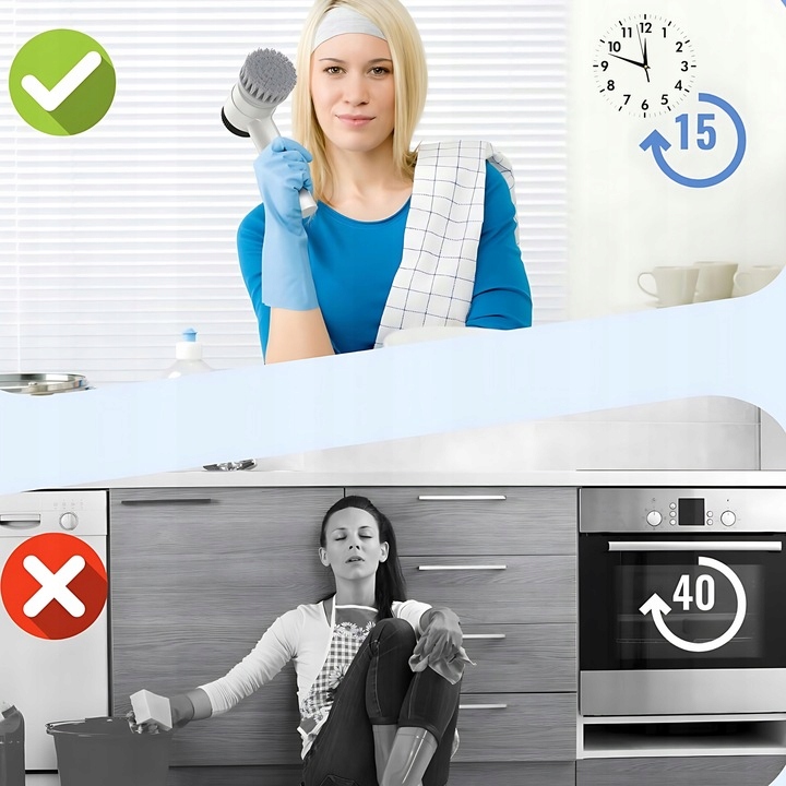 - Наша электрическая чистящая кисть - настоящий герой в поддержании чистоты. Он имеет широкий спектр приложений и ряд возможностей. Надежная в очистке кухня , ванная комната, автомобиль, плитки или даже жесткие -Ро -переодевания и раковины .