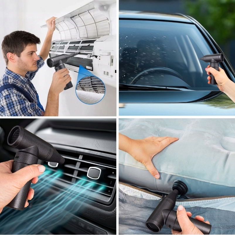 - ▶ ️ Широкий диапазон применений: использование для очистки компьютеров, труднодоступных мест, интерьеров автомобилей, также отлично подходит для накачки воды или освещения гриля