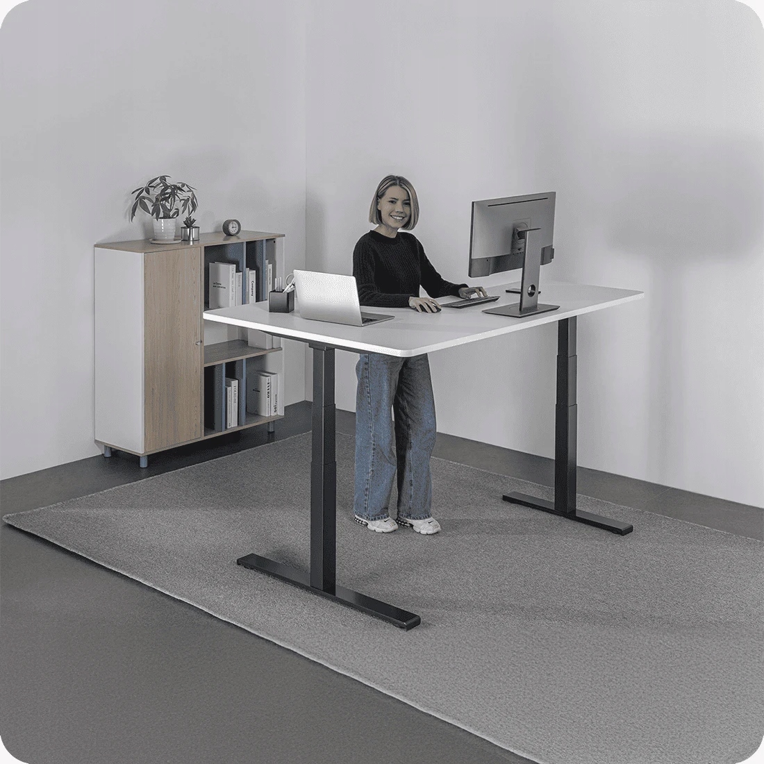 Электрический каркас стола оснащен системой предотвращения столкновений, что значительно повышает безопасность на рабочем месте.