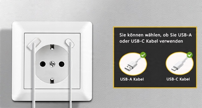 - USB -разъем подходит не только для USB -кабелей, но и для кабелей USB C. Вы можете выбрать различные зарядные соединения, в зависимости от требований, в зависимости от устройств требований.