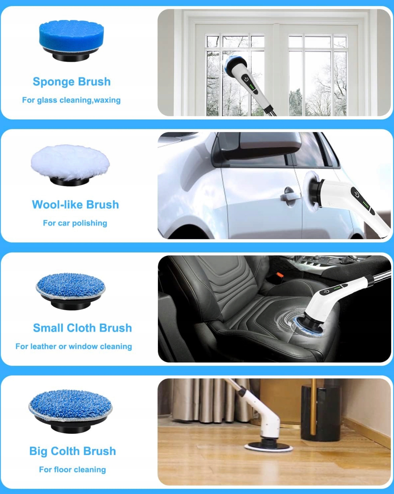 Электрическая щетка для чистки, вращающаяся, беспроводная, с 8 сменными насадками, с регулируемой ручкой, длина 137 см, для ванной, ванны, полов, кухни, автомобиля (белая)