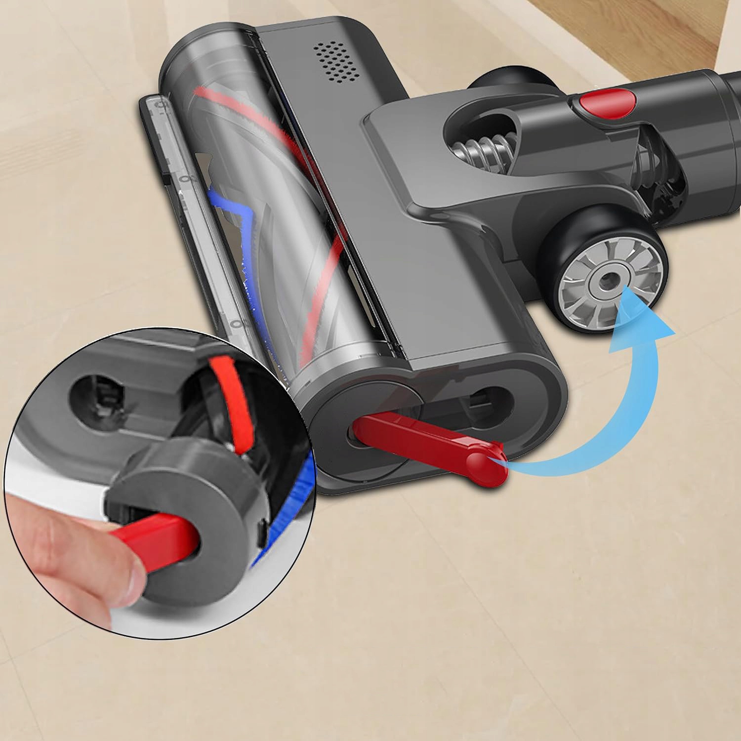 Эргономичный, низкопрофильный дизайн Благодаря плоскому профилю эту щетку можно легко использовать даже в ограниченном пространстве под мебелью, столами и кроватями. Эргономичный дизайн облегчает тщательную очистку даже при плохой видимости.
