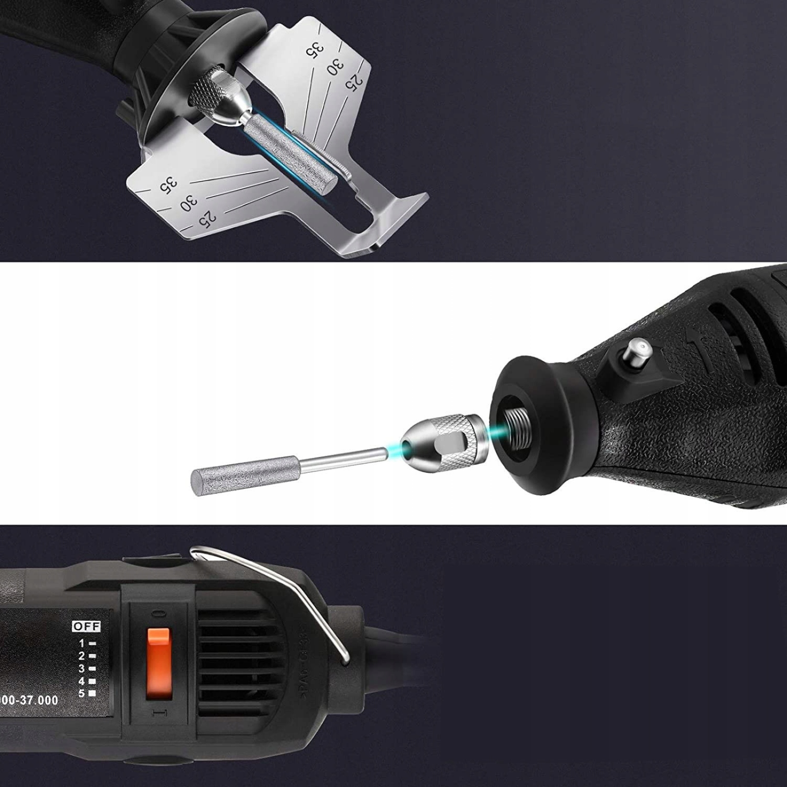 - Скорость холостого хода: 0–37000 об/мин