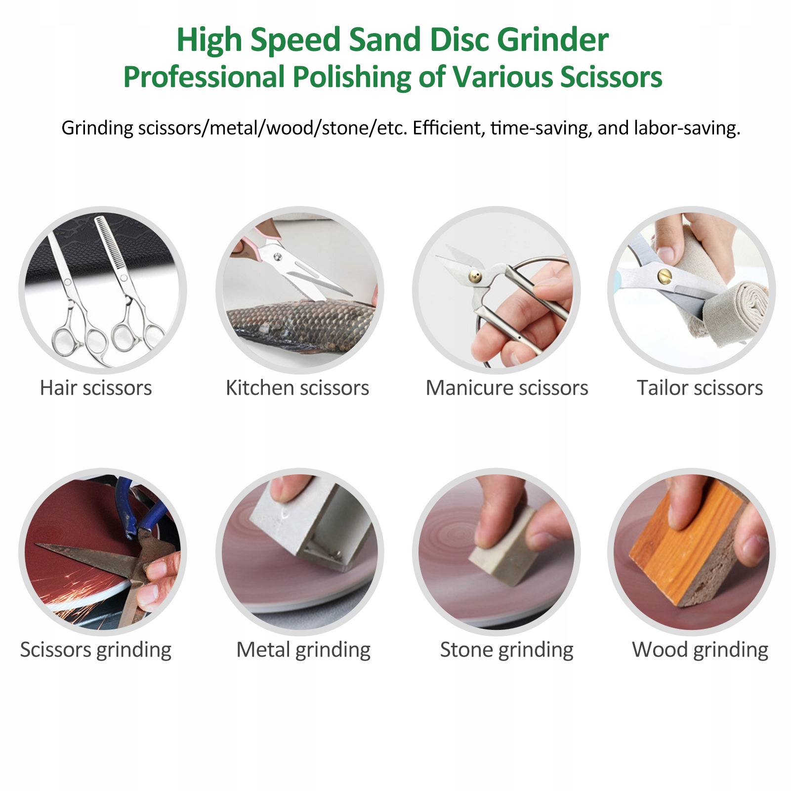 - 【Sander awki】: 6-дюймовая дисковая шлифовальная машина, профессиональная для заточки всех видов ножниц, таких как парикмахерские ножницы, кухонные ножницы, ножницы для ногтей, портновские ножницы и так далее. Он также может эффективно заточить ножницы/металл/дерево/камень и т. д.