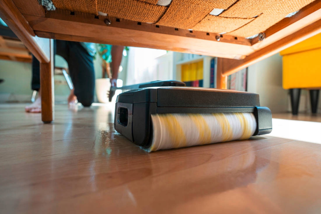 Удаляет все виды повседневных загрязнений, как влажных, так и сухих, одним движением. Устройство умеет очищать по краям и благодаря встроенному фильтру легко удаляет волосы и мех.