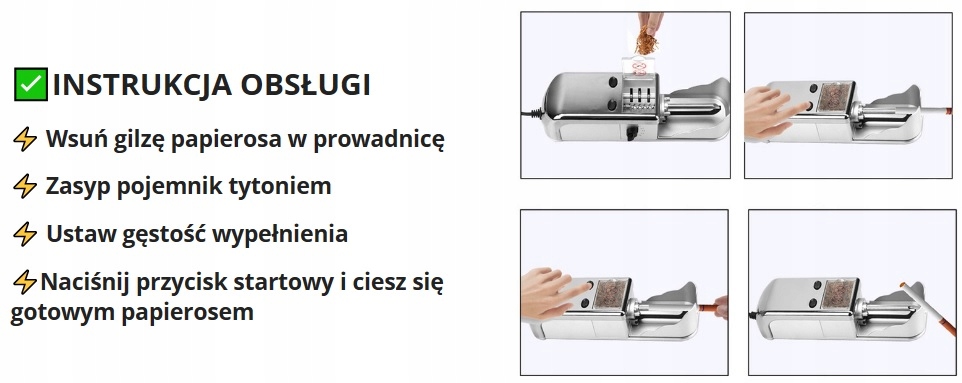Оплачивая «ЭЛЕКТРИЧЕСКАЯ Сигаретная МАШИНА НАПОЛНИТЕЛЬ ТАБАКА», вы можете быть уверены, что данный товар из каталога «Пробивая машины» будет доставлен из Польши и проверен на целостность. В цене товара, указанной на сайте, учтена доставка из Польши. Внимание!!! Товары для Евросоюза, согласно законодательству стран Евросоюза, могут отличаться упаковкой или наполнением.
