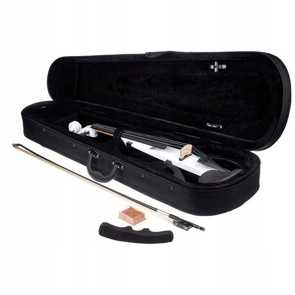 В комплект входит футляр, подставка для плеч, композитная дужка, канифоль и батарея 9 В.