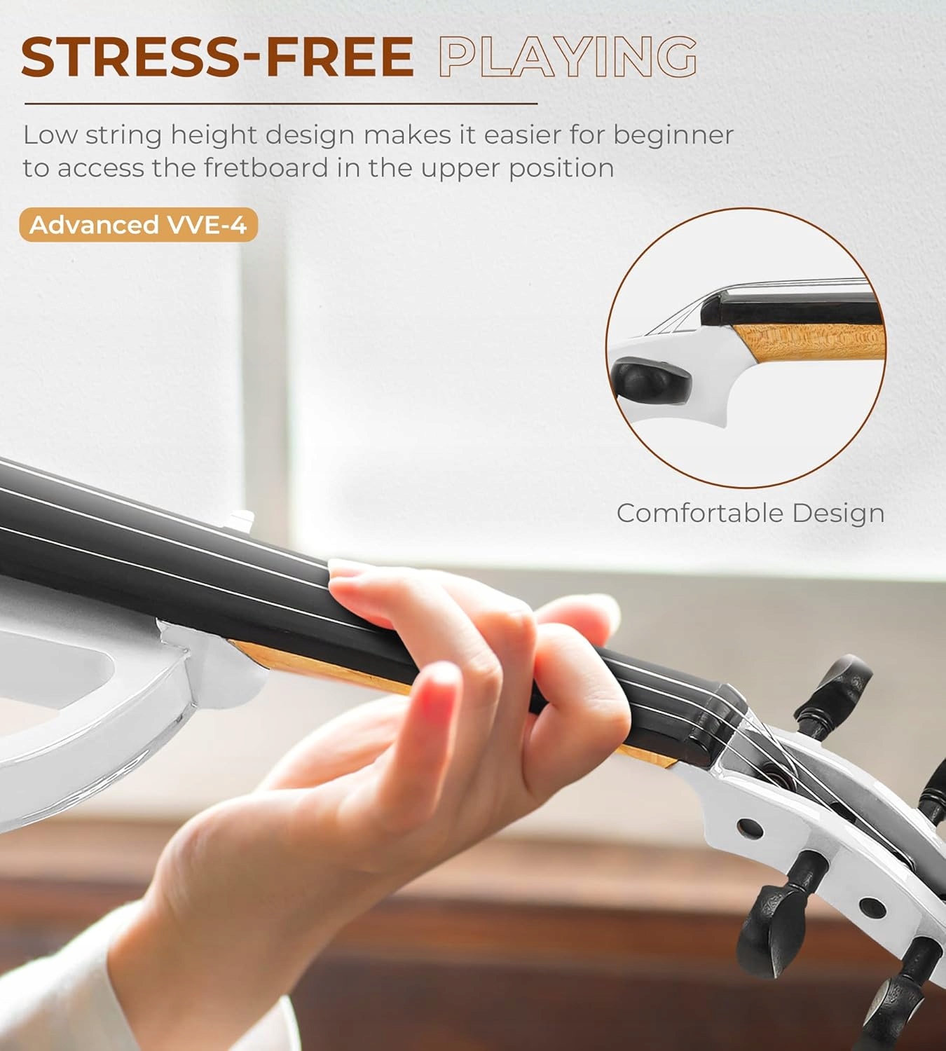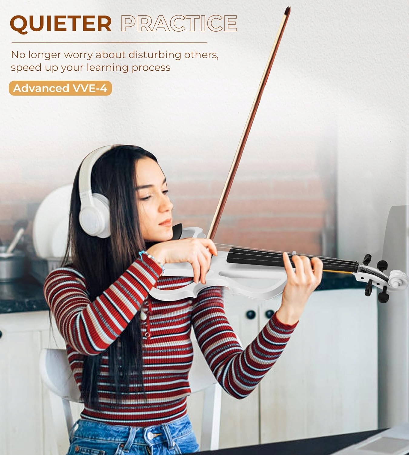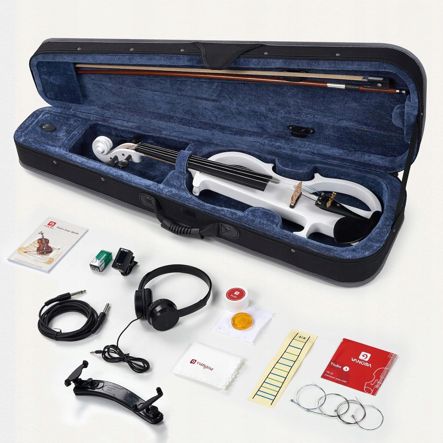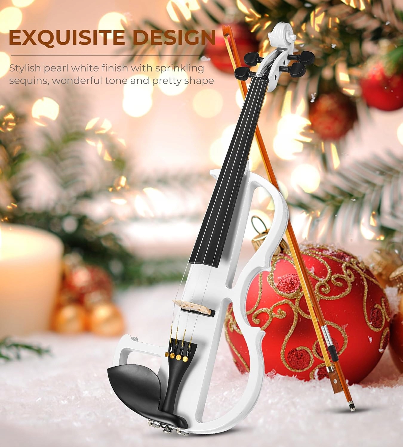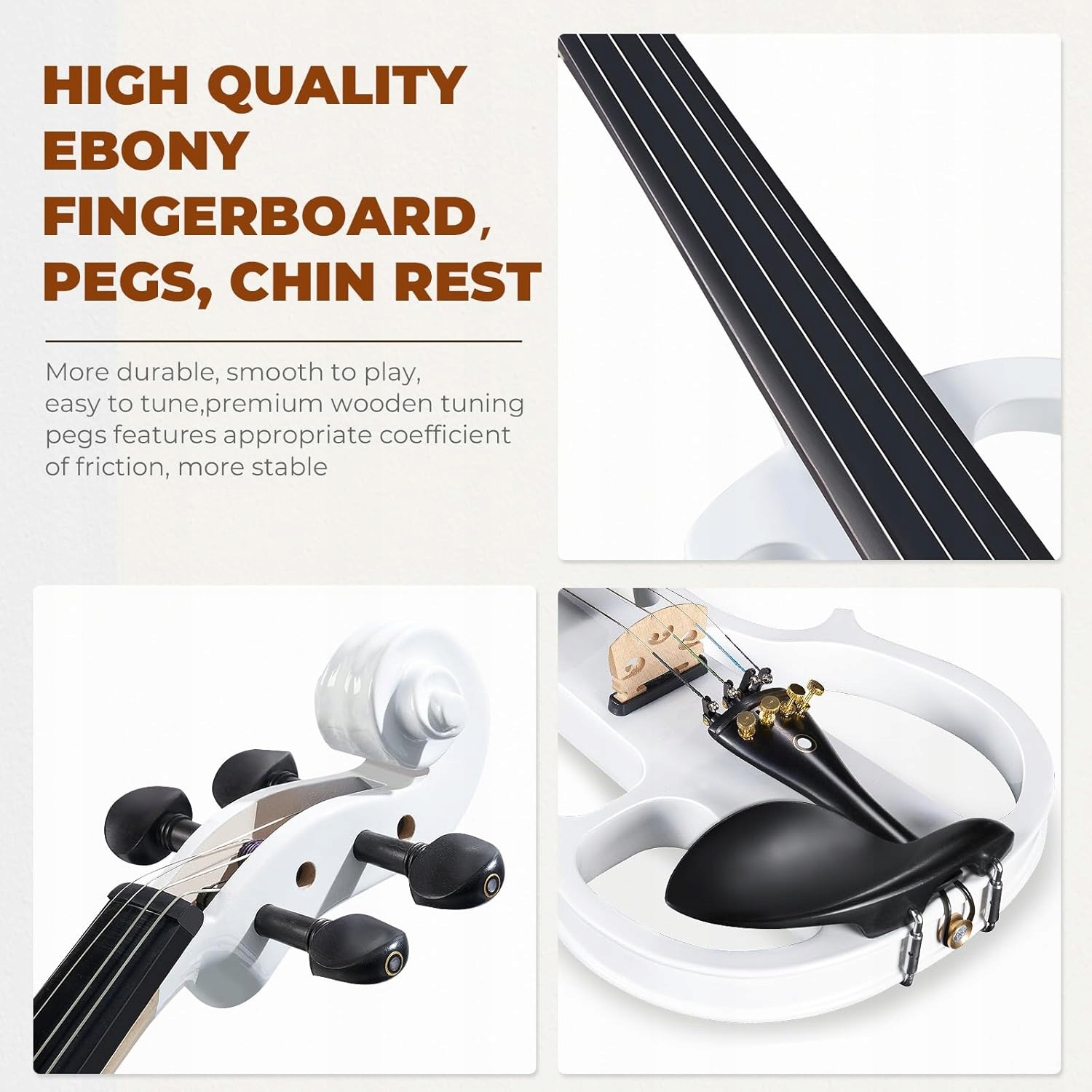 ⭐⭐⭐⭐✅5 Циш -скрипание 4/4 Строка Электрическая скрипка скрипания с гебанской гебанской 4/4 набор скрипки (белый: белый)