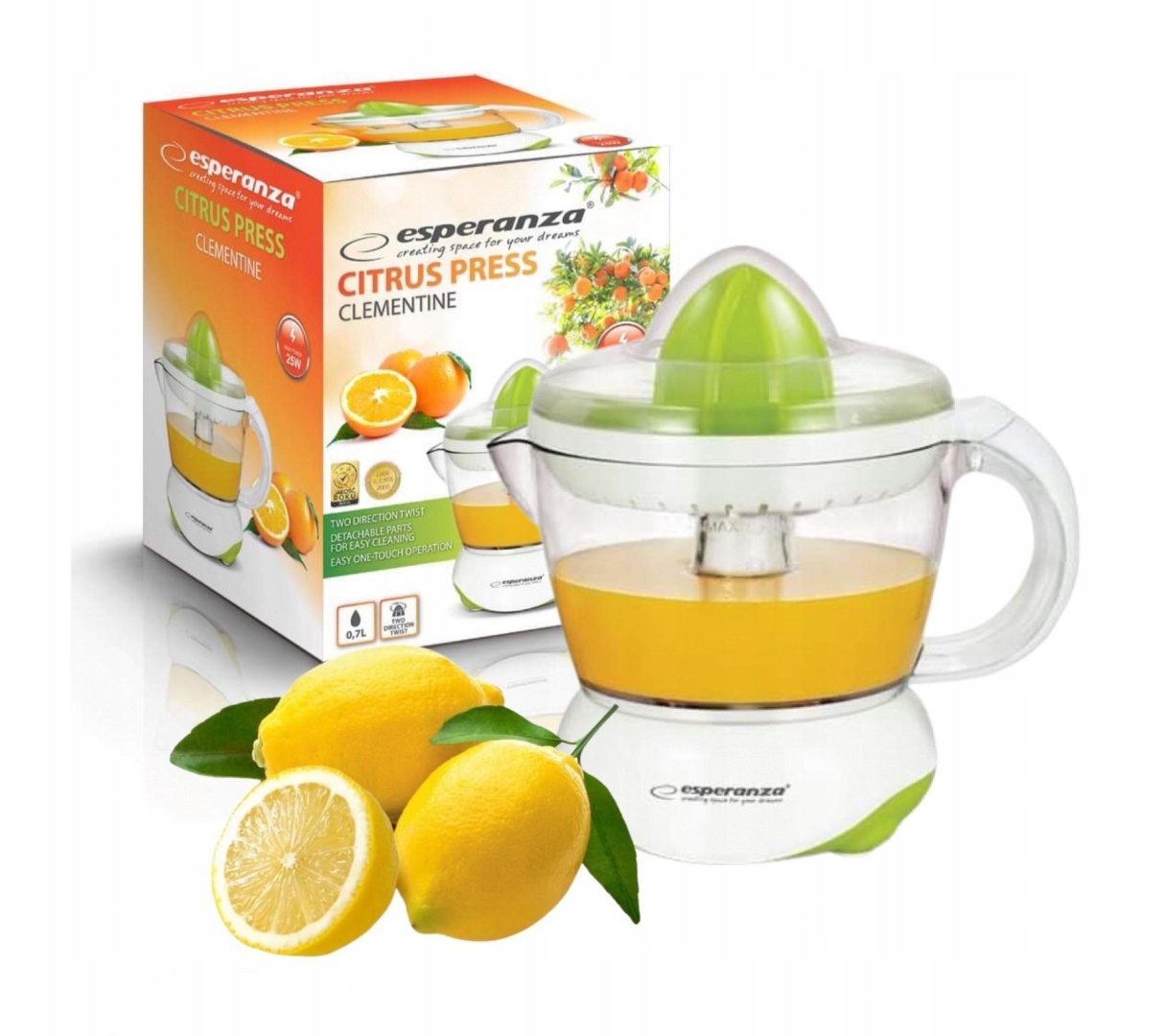 Начните новый день с порции полезного витаминыиз сока, приготовленного в домашних условиях. Благодаря соковыжималке Esperanza вы быстро и эффективно получите свежий цитрусовый сок в любое время.