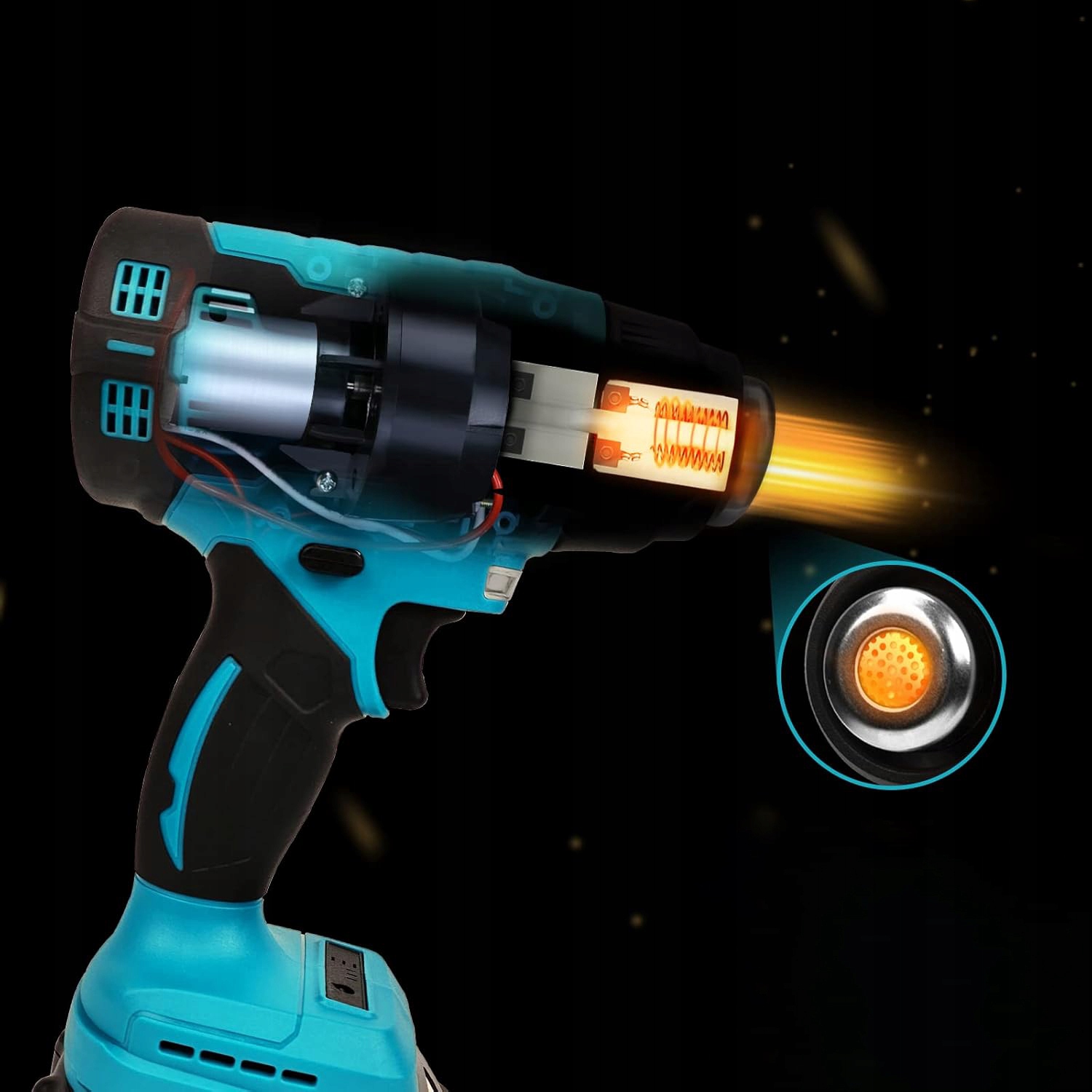 ЕЛЕКТРИЧНА ТЕПЛОВА ГАРМАТА ПОГОДА 400 °C ДЛЯ АВТОМОБІЛЬНИХ ОБКЛЮЧЕНЬ 3 В 1 З 2 АКУМУЛЯТОРАМИ