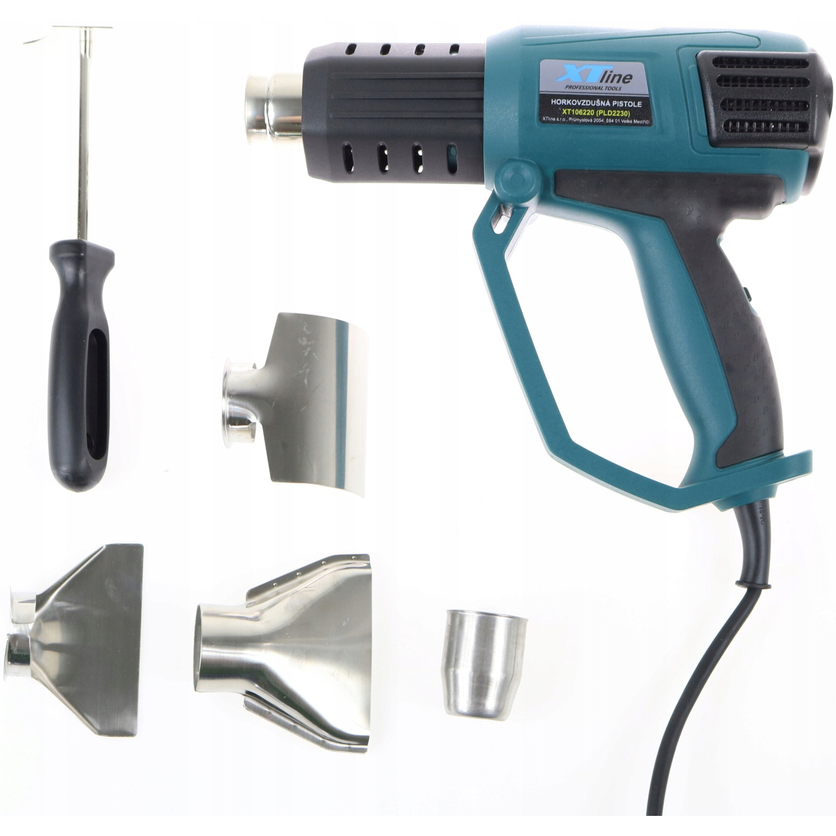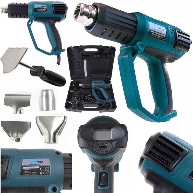 ЭЛЕКТРИЧЕСКАЯ ТЕПЛОВАЯ ПИСТОЛЕТКА С ЖК-ДИСПЛЕЕМ, РЕГУЛИРУЕМАЯ ТЕМПЕРАТУРА 650°C + АКСЕССУАРЫ XT-LINE 2000 Вт для эффективной работы.