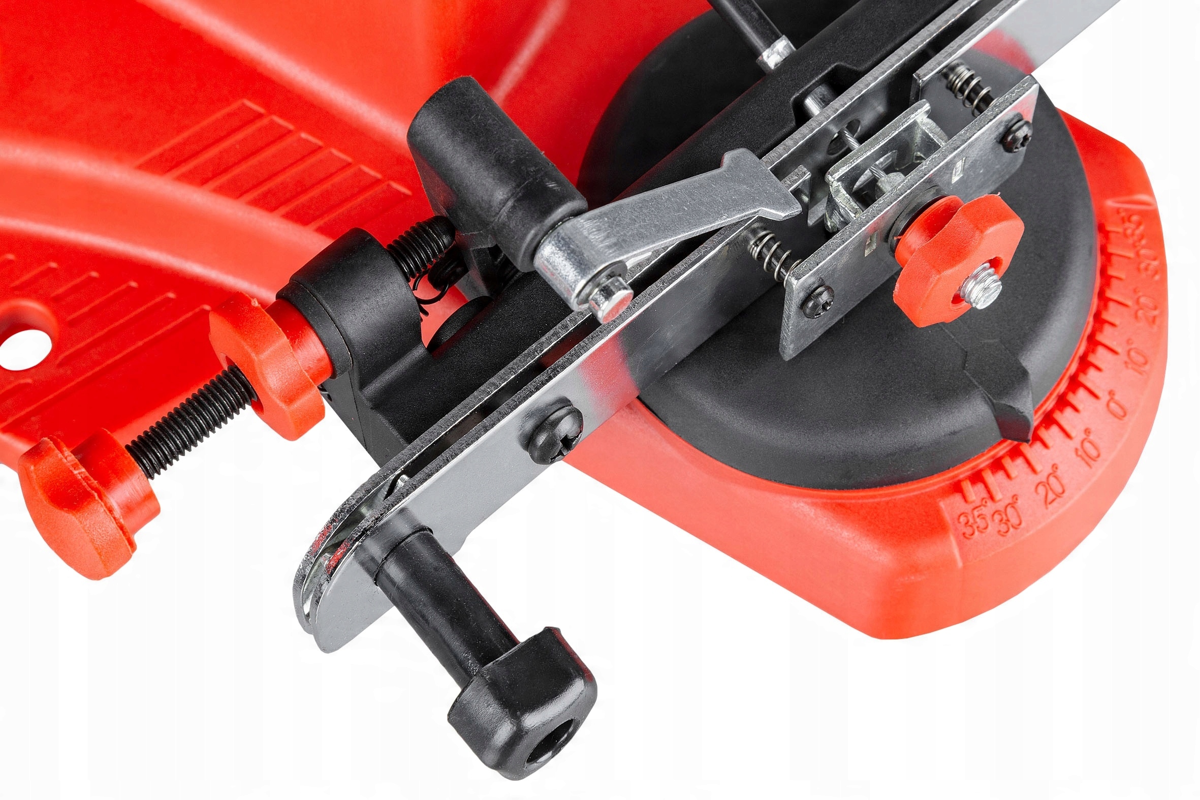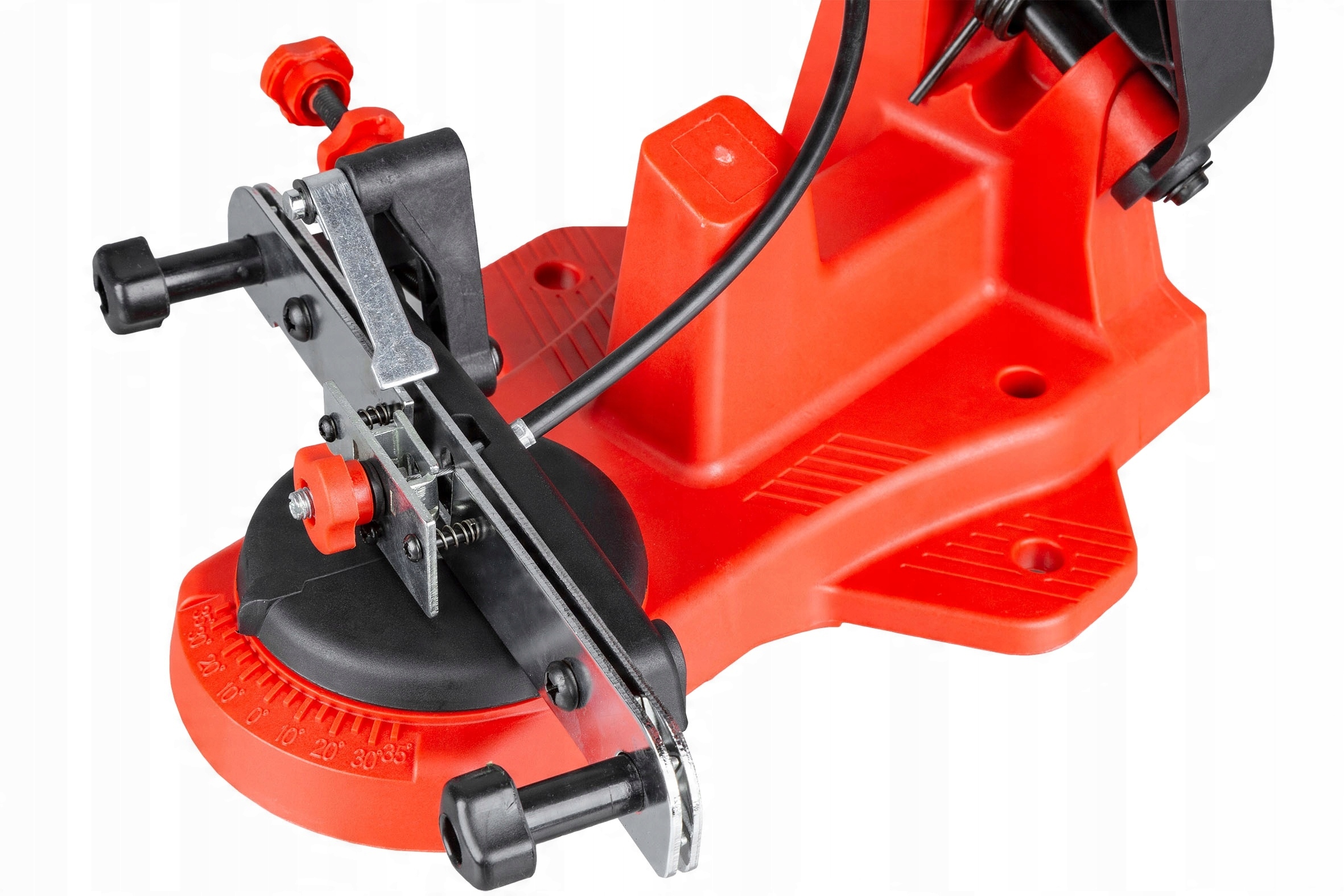 Жидкость Регулировка напряжения цепи и Регулировка угла заточки с точным масштабом позволяет заточить каждую ячейку повторяемой способом без необходимости его чрезмерного натяжения. Точилка оборудована повернутым виком с регулировкой угла заточной (угол поворота 35 -й) и пределом глубины шлифования , что позволяет затянуть цепь очень точным образом.