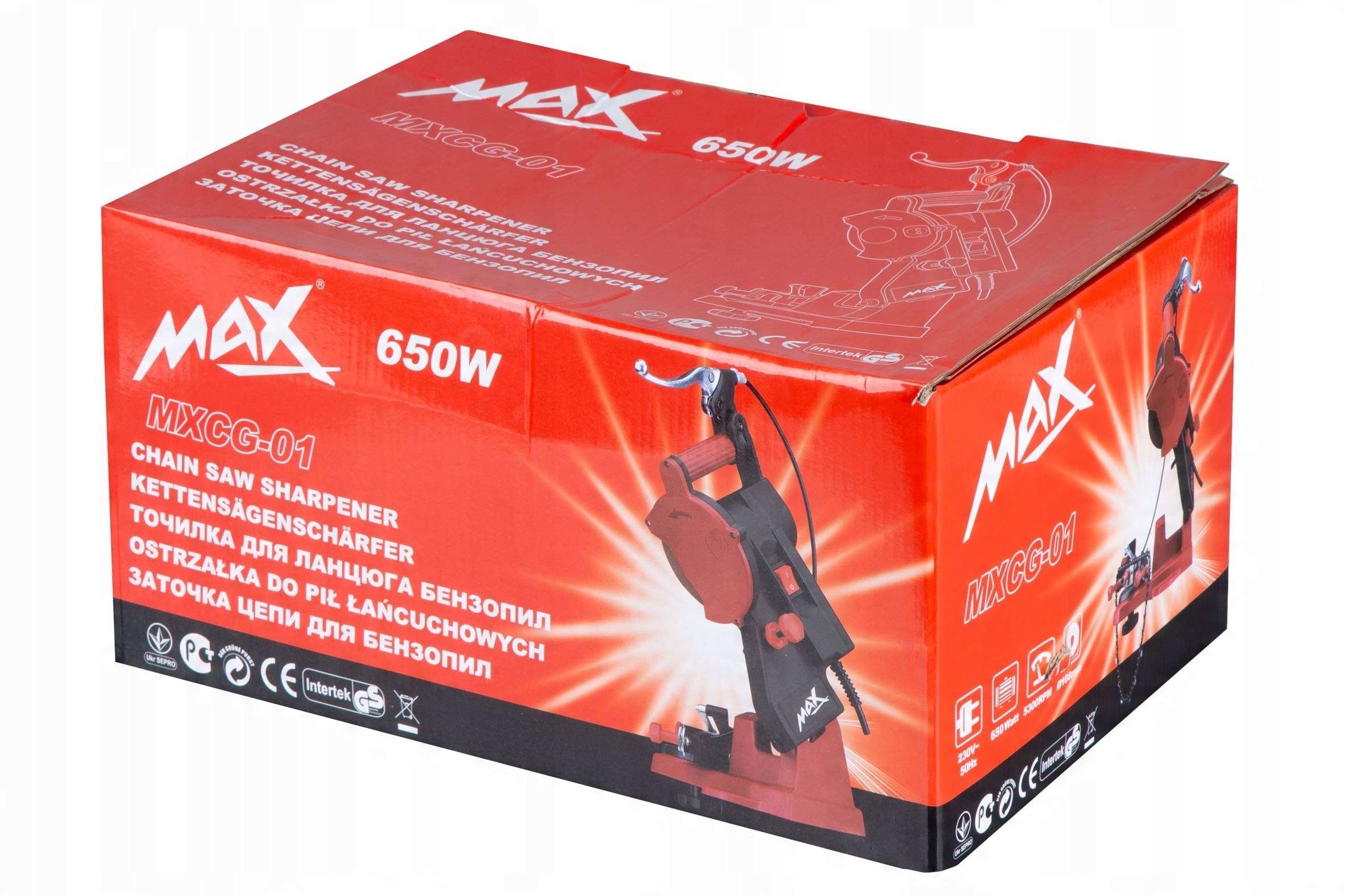 Точилка оснащена сильным и эффективным индукционным двигателем 650 Вт и 5300 революциями в минуту . Благодаря этим параметрам мы можем легко затянуть окрашенные цепи, даже из которых изготовлены из твердых материалов.