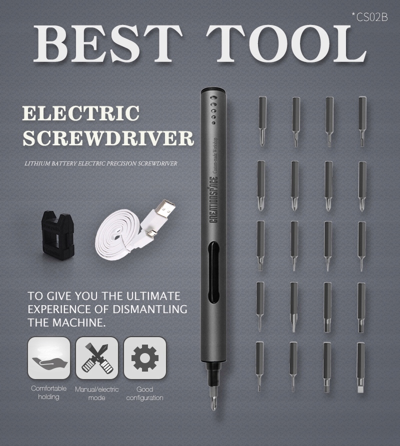 Надежная беспроводная отвертка CREATIONSPACE ZPJ1802A CS02D с эффективным аккумулятором 260 мАч и 20 битами, намагничивателем и практичной упаковкой.
