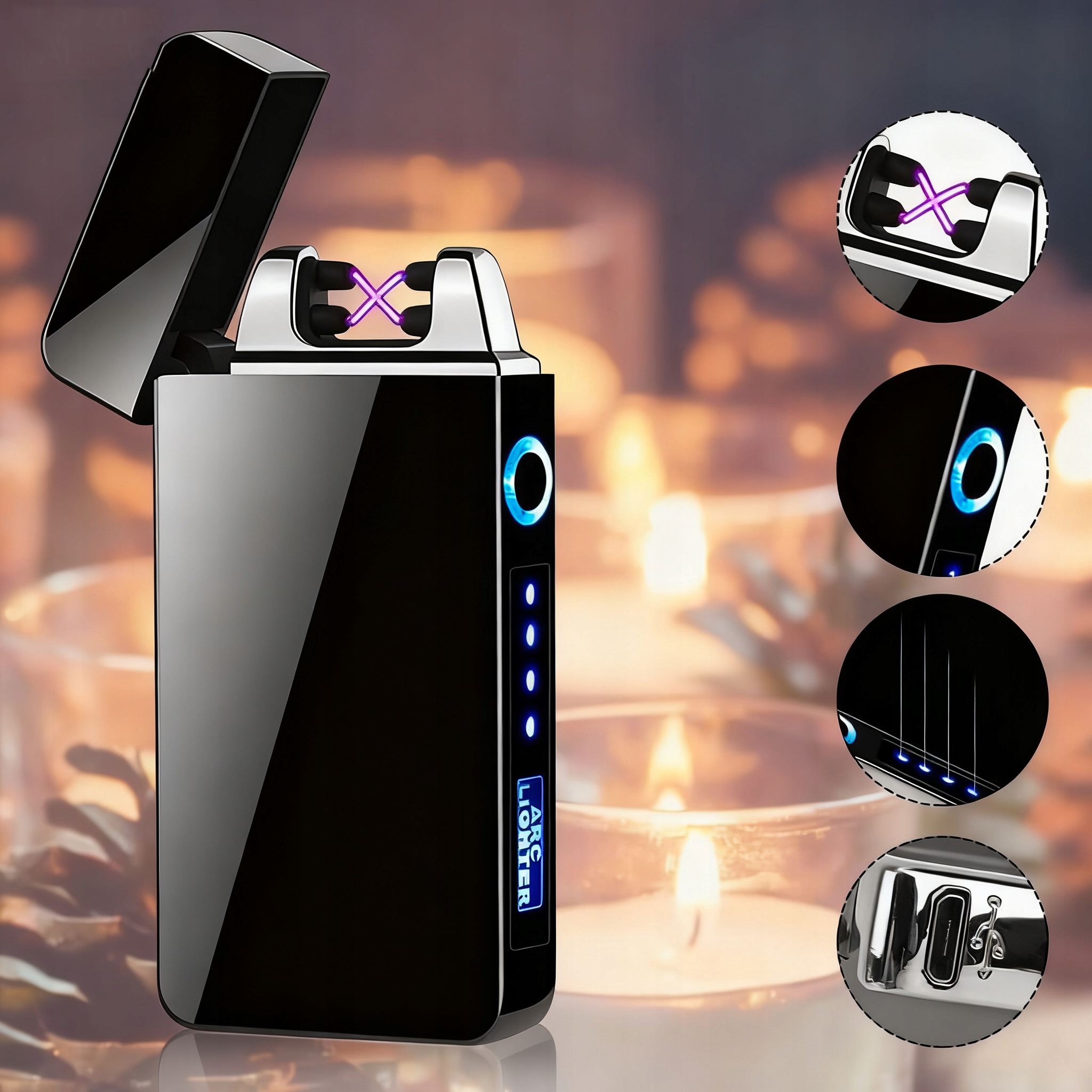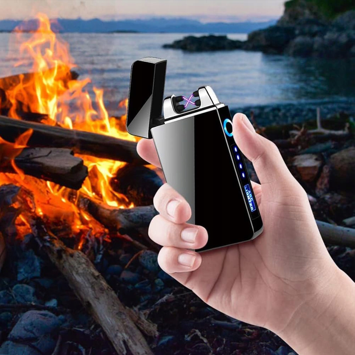 ☀️Электронная USB-зажигалка, двухдуговая зажигалка со светодиодным сенсорным экраном и индикатором заряда батареи, ветрозащитная, плазма, подарок для мужчин и женщин☀️