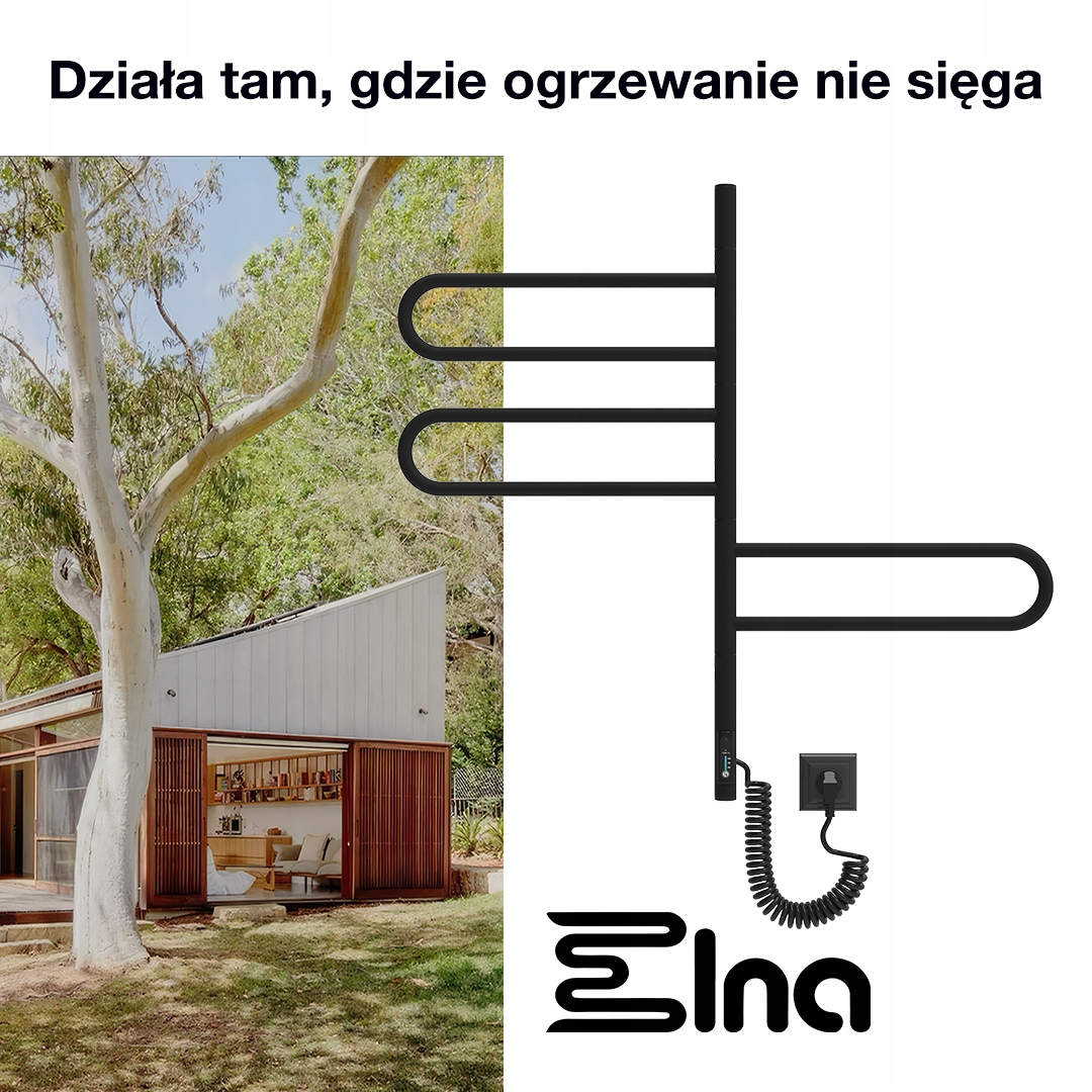 Электрический нагреватель ванной комнаты Fluger 3 Black IS с сухим кабелем внутри и не нуждается в дополнительных жидкостях, стоит только подключить его к источнику питания, и он работает! Сушилка имеет 3 подвижных пролета, каждая из которых вращается независимо от второго.