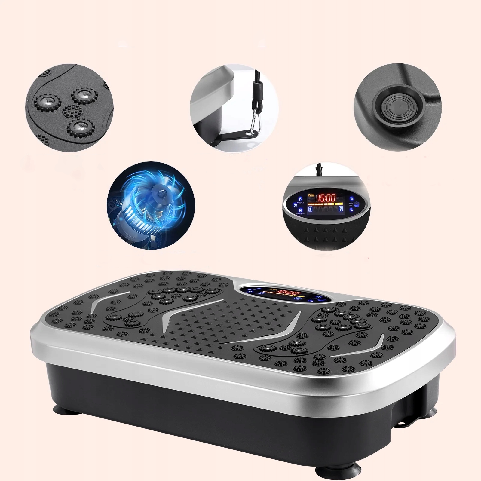 ✅cia Engine Emange and Demote Dothere: Входное напряжение вибрационной платформы составляет 220 В 50 Гц, входная мощность 200 Вт. Строительный, ультра -перегрузочный двигатель обеспечивает спокойную работу. Вибрационная платформа характеризуется высокой интенсивностью вибраций, но не генерирует шум. Кроме того, он имеет 3 -метровый пилотный диапазон и кабель 1,4 м, который обеспечивает комфорт во время домашних тренировок и упражнений.