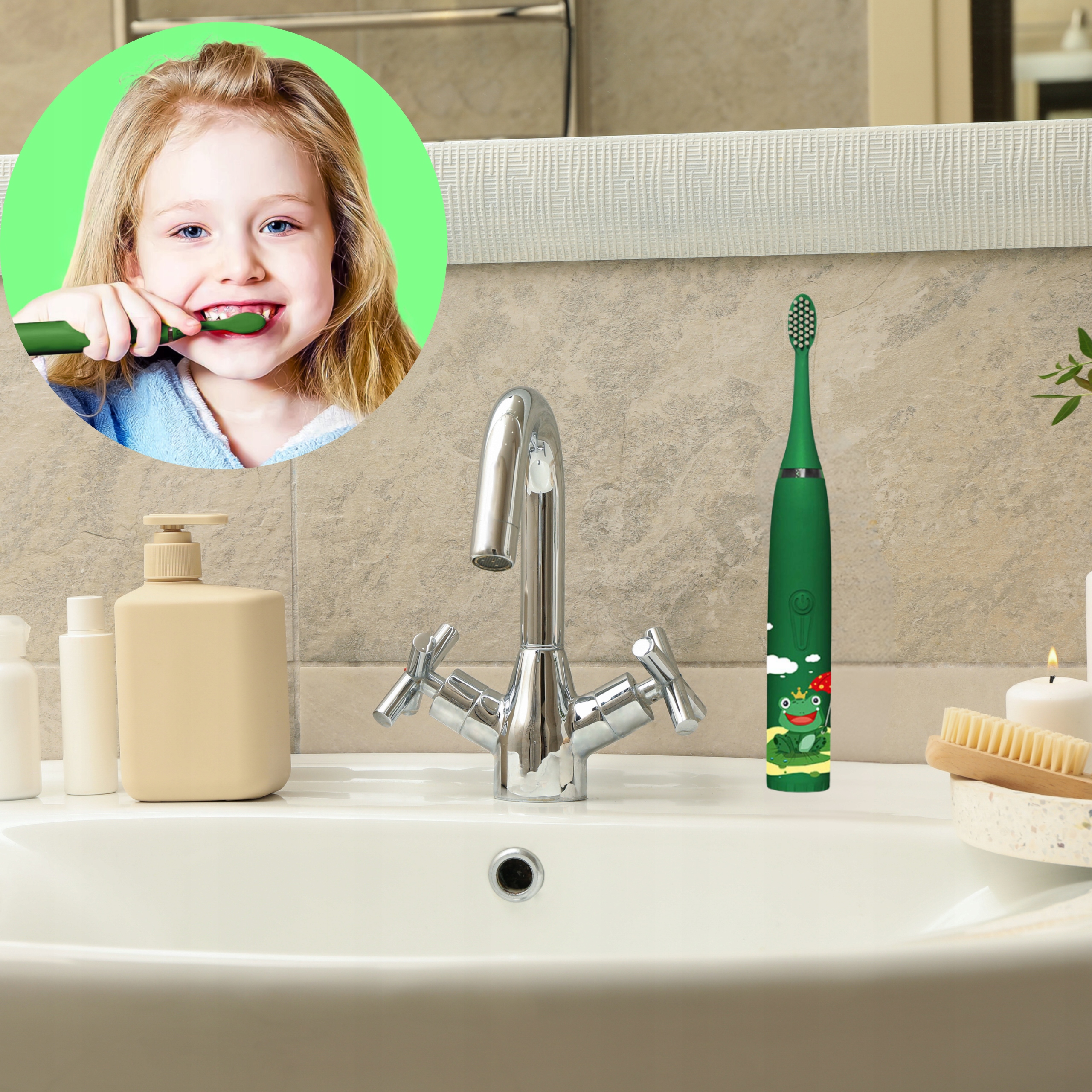 электрический сын -to -tooth -щетка для детской лягушки зеленый подарок h1>