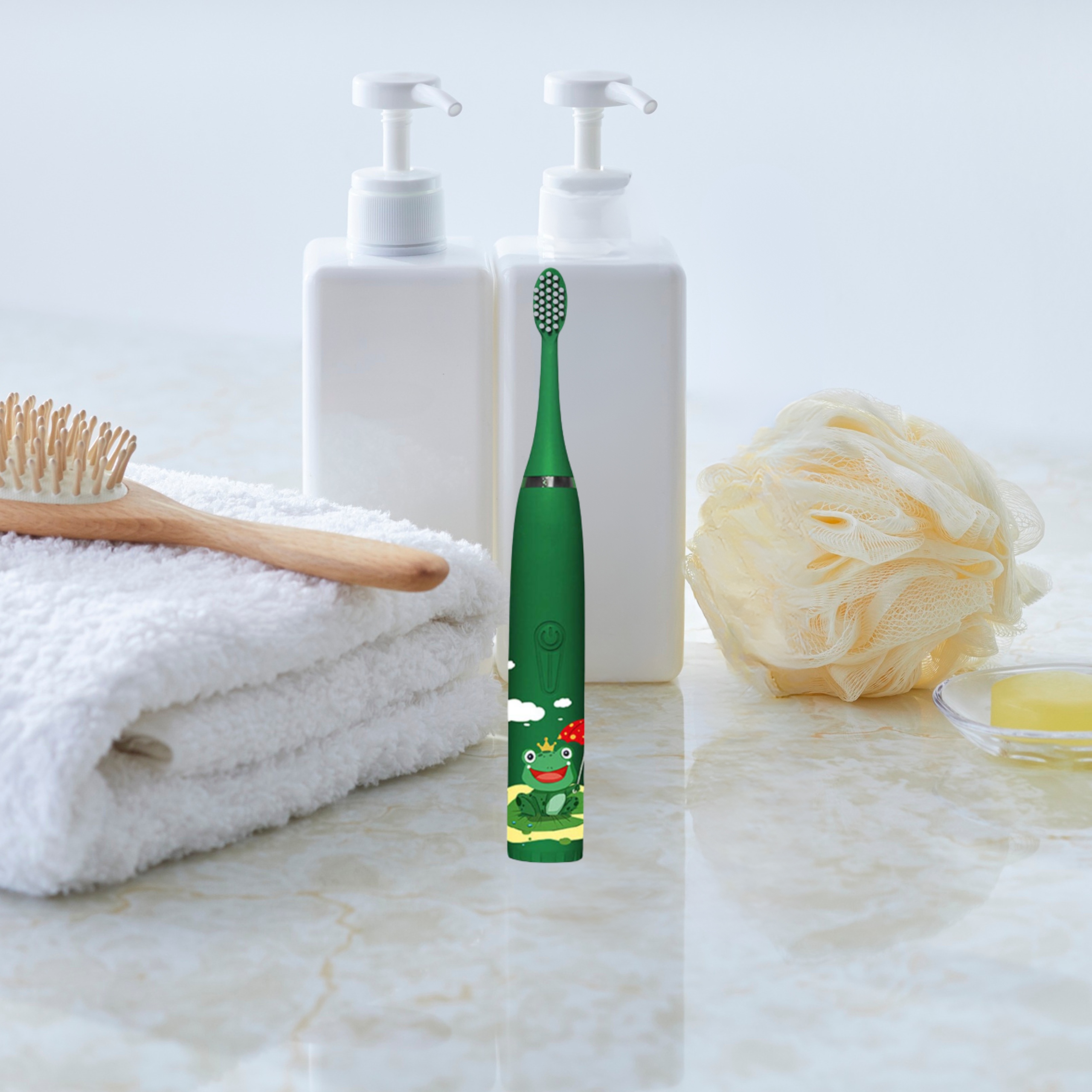 Электрическая звуковая щетка для ребенка для детской лягушки зеленый подарок