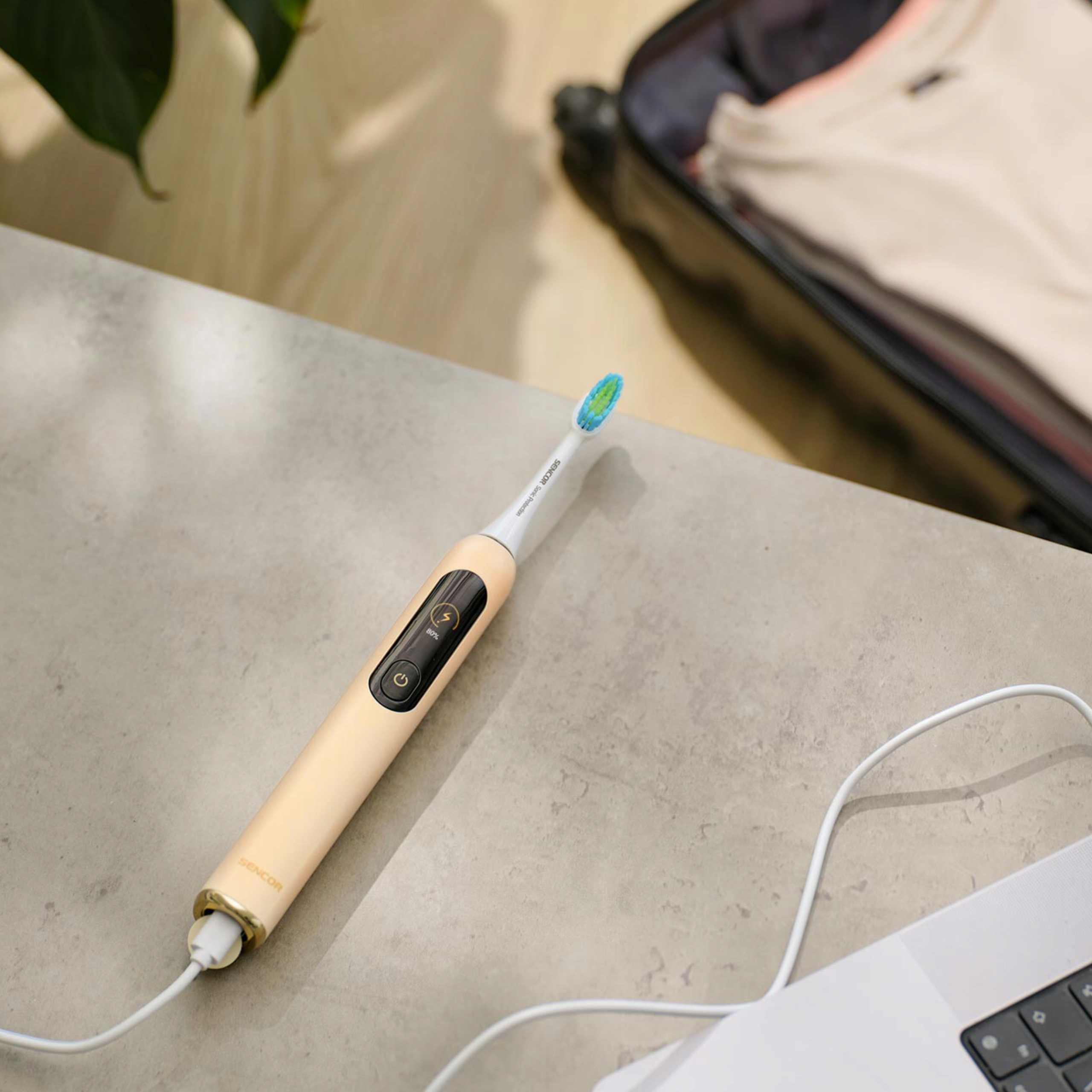 ⭐⭐⭐Электрическая зубная щетка Sencor SOC 5011GD Sonic, 4 режима, 2 головки, дисплей, золотой цвет⭐⭐⭐