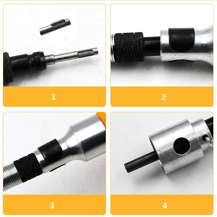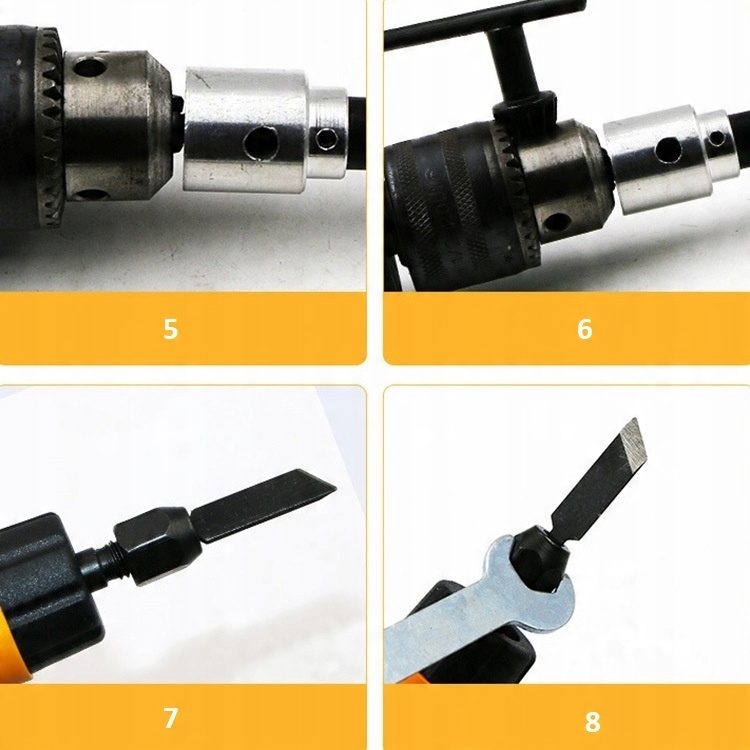 Инструмент, закрепленный на дрели или отвертке. Благодаря вибрации до 25 000 раз в минуту работать значительно легче, чем обычным долотом. Усилие, которое необходимо приложить, намного меньше, а время обработки значительно короче.