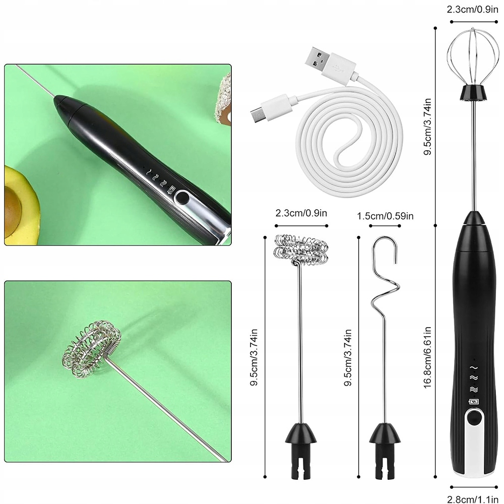 Электрическое молоко пенится кофейный миксер + 3 смесительных головок