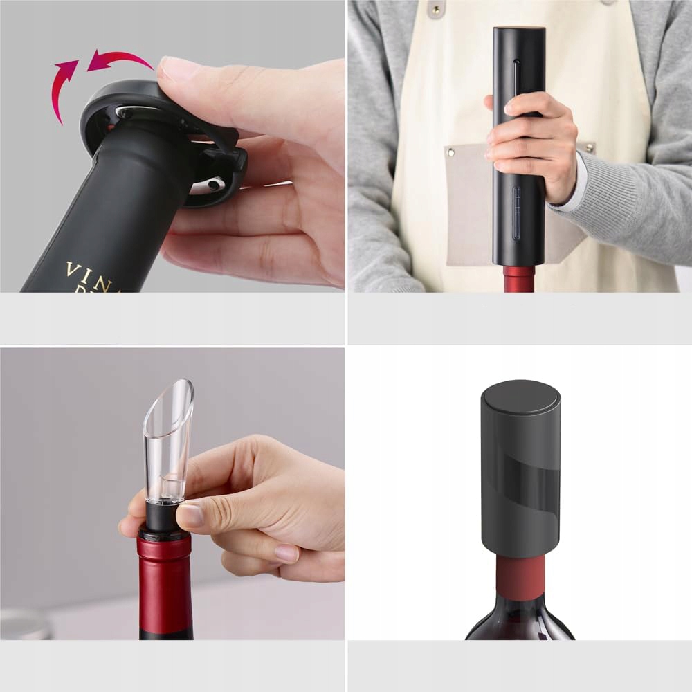 🍷🍷 [Легко в использовании]: Разрежьте алюминиевую фольгу, нажмите и удерживайте кнопку электрического вина, чтобы вытащить крышку. В этом открытии вина есть прозрачное окно, которое позволяет вам увидеть рабочую процесс.