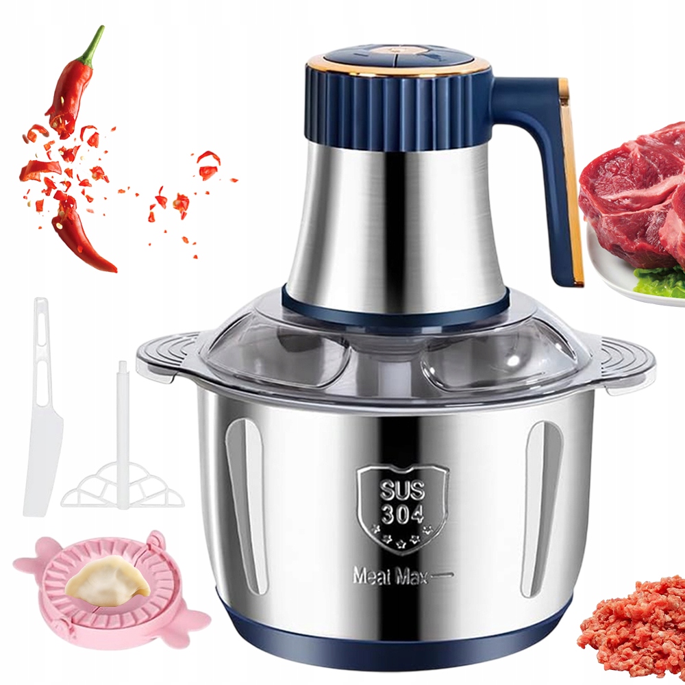 ✔ , оборудованный 6 лезвиями и мощным двигателем 500 Вт , он может разрезать мясо, фрукты, овощи за несколько секунд.