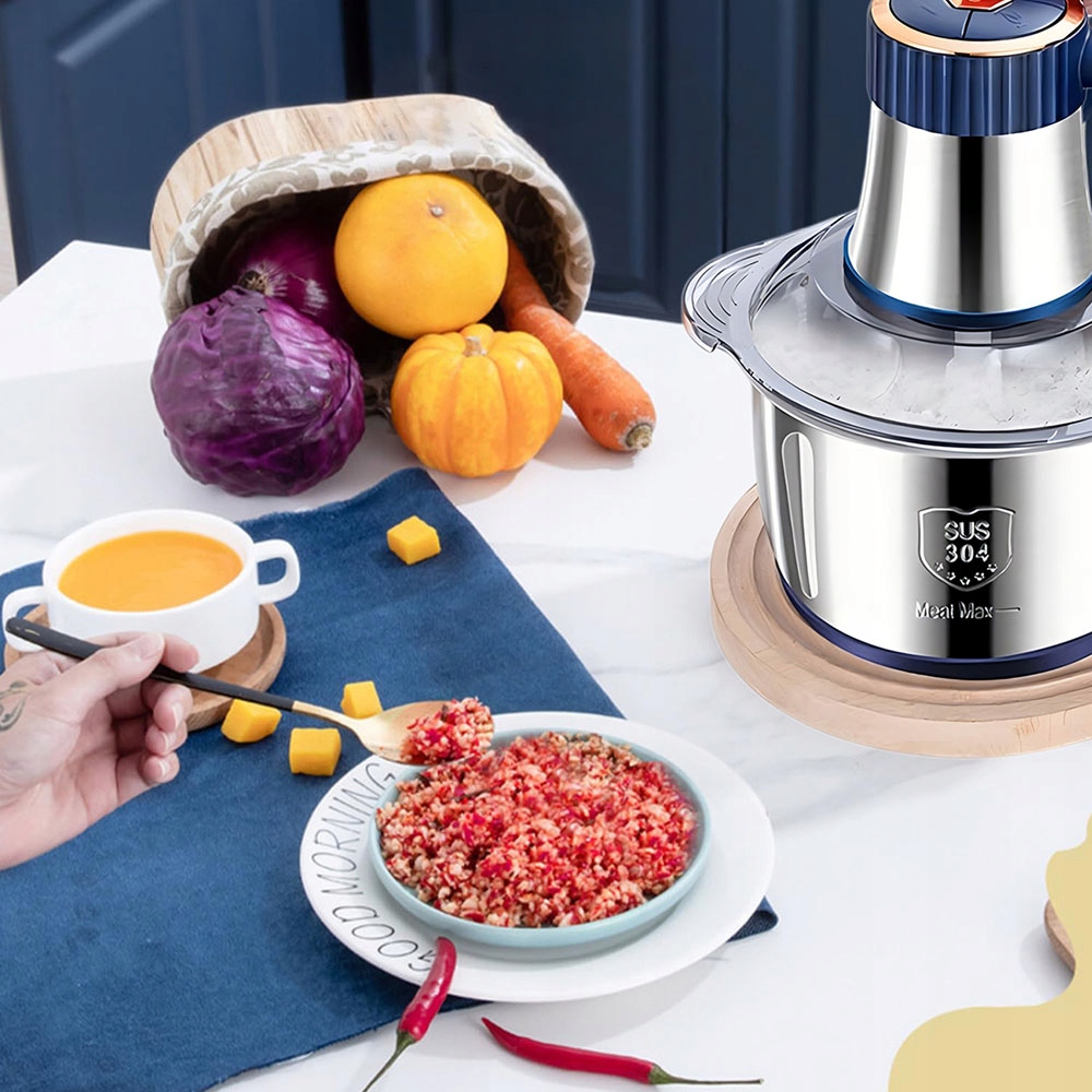 ➡5 скорости h2> - Электрический кухонный измельчитель имеет две скорости. Низкая скорость подходит для обрезки овощей, фруктов, чеснока, перца чили и т. Д.; Высокая скорость подходит для резки мяса, ветчины, моркови и т. Д.