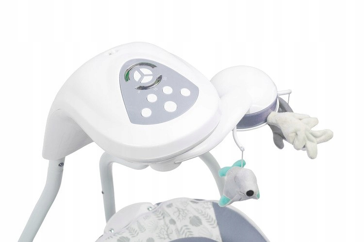Панель управления позволяет 5-ступенчатую регулировку скорости и настройку таймера. Качели воспроизводят 11 мелодий и звуков природы, таких как шум воды и пение птиц, которые помогают расслабиться и заснуть.