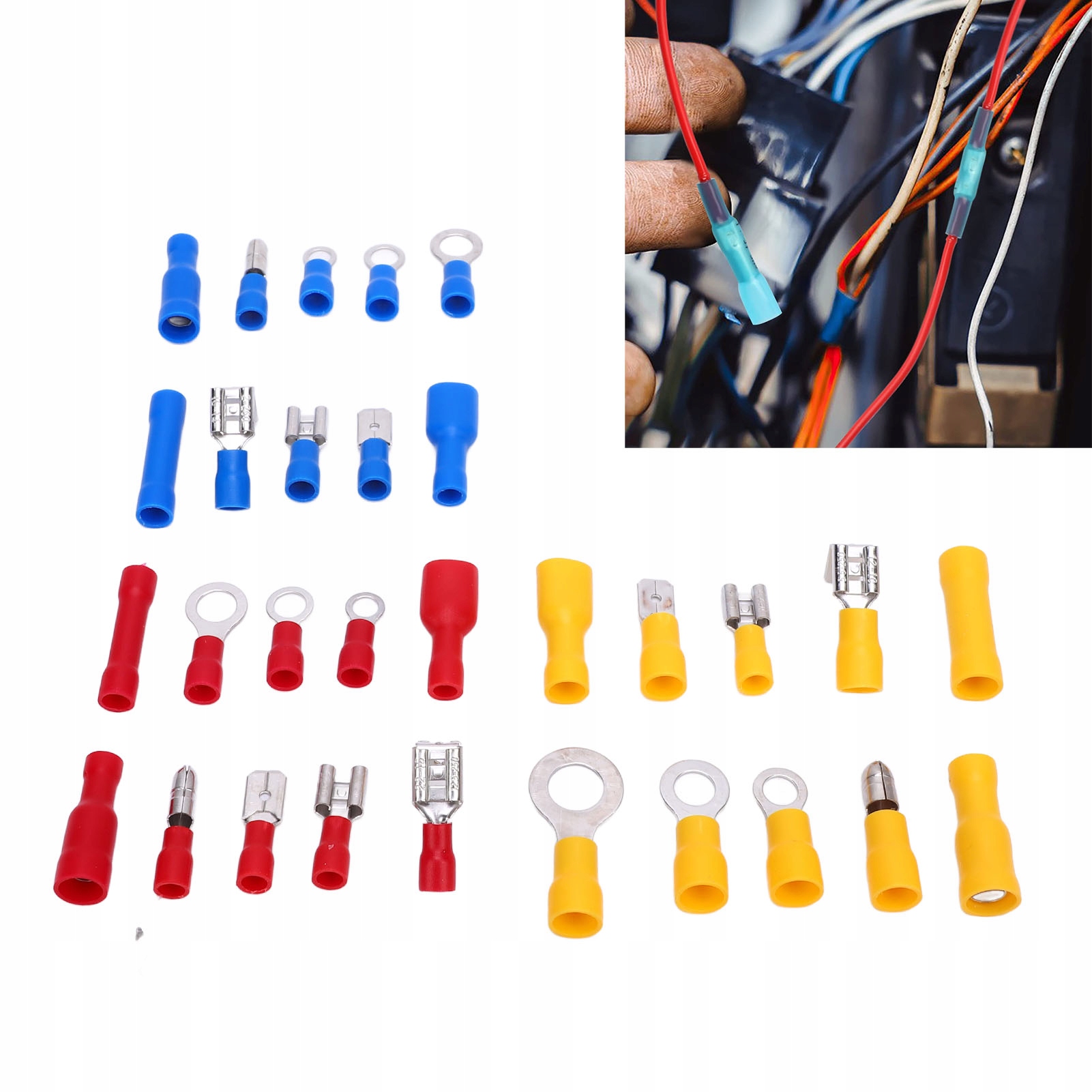 4. Универсальные спецификации зажимов: наши разъемы с термокурными проволоками находятся в красном (22-16 AWG), синий (16-14 AWG) и желтый (12-10 AWG), обеспечивая адекватную адаптацию ко всем потребностям проводов, независимо от применения.