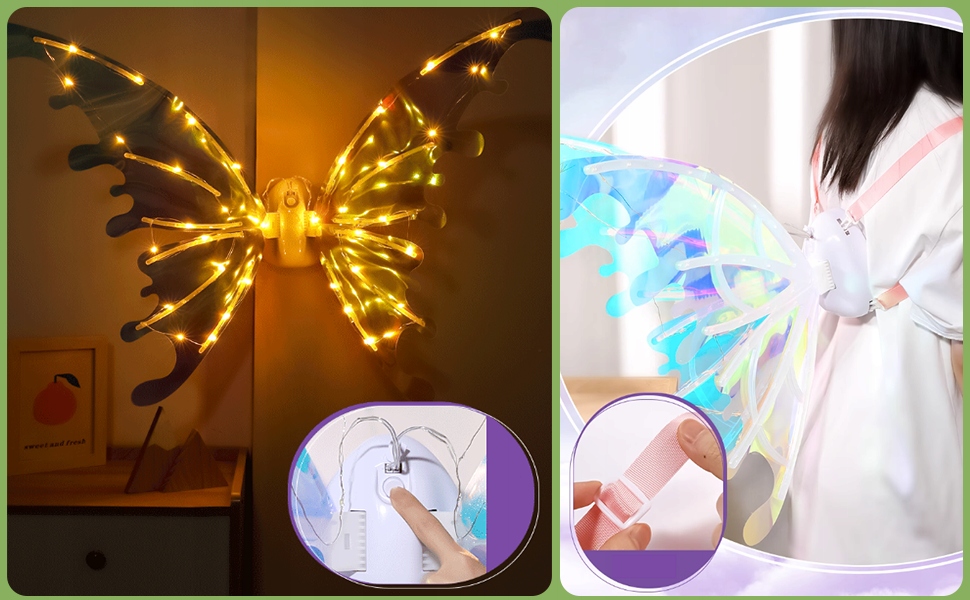 🦋 скорость в волшебное существо благодаря крыльям электрической феи, украшенной красивыми светодиодными лампами и съемными крыльями бабочки, которые будут переворачиваться без усилий.