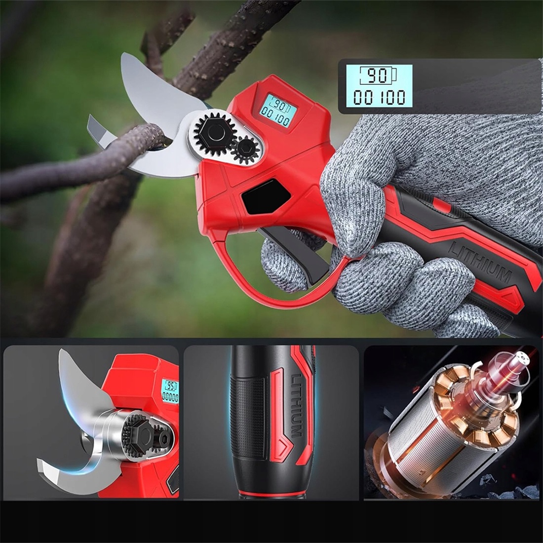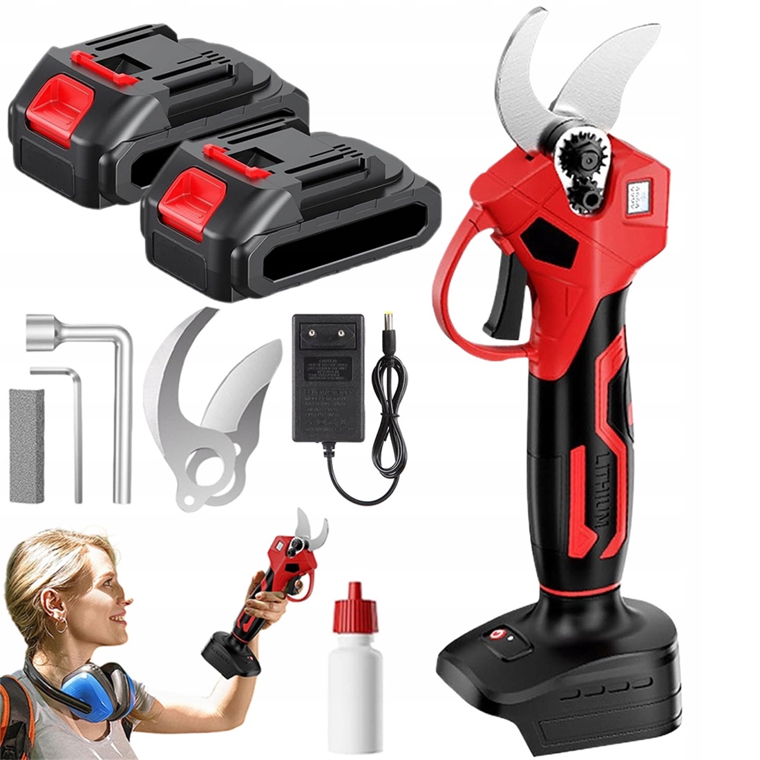 прощайте, ручные ножницы! - Этот секатор может повысить эффективность работы в саду в 6-8 раз. С нашим мощным электрическим секатором вы сможете всего за 1 час сделать то, на что у других уходит 6 часов, и он очень прост в использовании. Для настоящих профессионалов садоводства это означает до 6 раз больший доход и гораздо меньше ручного труда. Для пожилых и ослабленных людей обрезка ветвей и кустов становится расслабляющим удовольствием, а не утомительным и потным занятием!