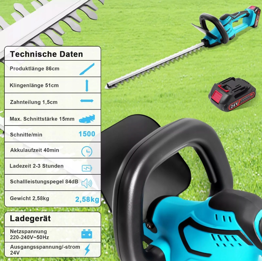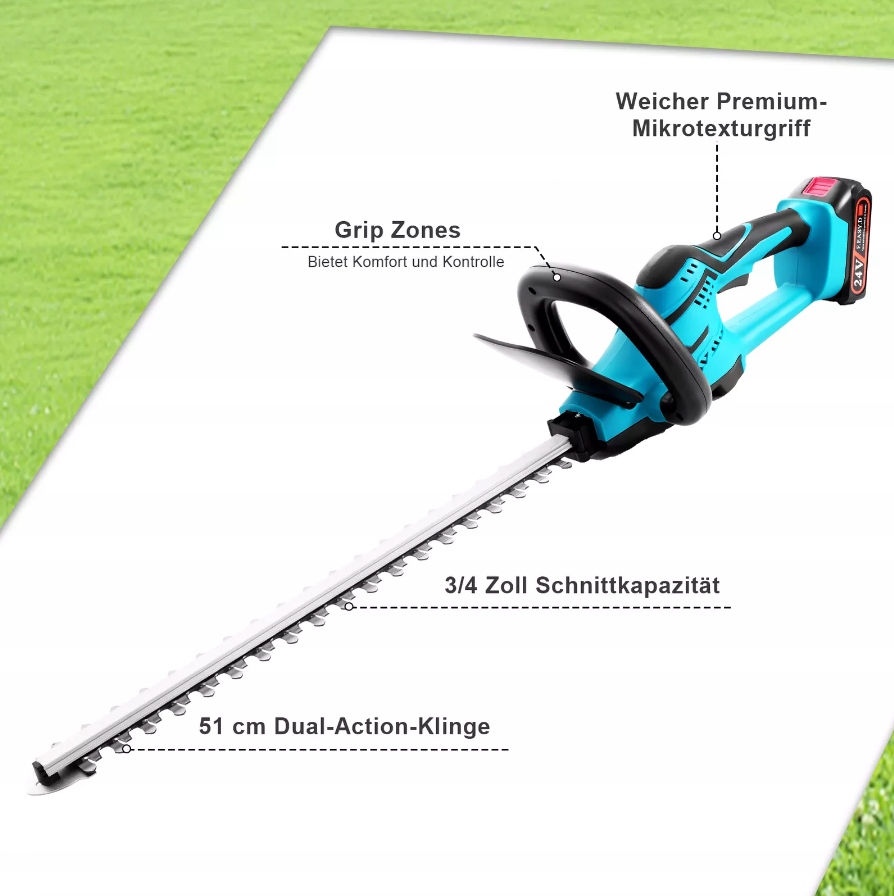 - Диаметр сокращения 15 мм обеспечивает более эффективную обрезку кустарников и живых изгороди, а также двойные стальные лезвия шириной 51 см гарантируют уникальную резку живых изгородей, гарантируя даже разрезание и меньшие вибрации.
