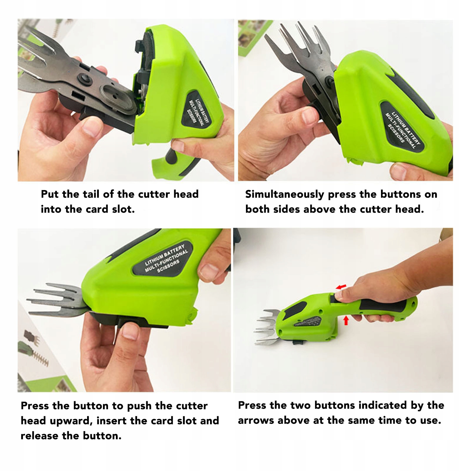 1. Конструкция 2-в-1: ручной электрический триммер для травы можно легко и быстро превратить в кусторез, оснащенный лезвием для стрижки травы и триммерным лезвием, что позволяет удобно заменять лезвие.