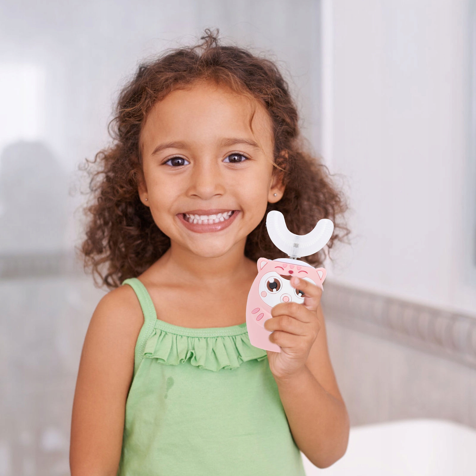 ✅Детская зубная щетка US-образной формы может чистить все зубы одновременно.
