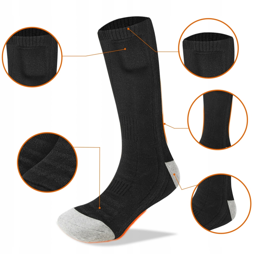 - УНИВЕРСАЛЬНЫЕ носки универсальные, размер можно регулировать: от 36 до 44. Носки до колен почти до колен согреют не только ступни, но и икры. Благодаря этим обогревателям вы получите удовольствие от пеших прогулок или катания на лыжах в зимние дни.