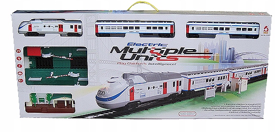 Точная копия пассажирского поезда, созданная по образцу реальных высокоскоростных железных дорог, с автоматически опускаемым и поднимаемым шлагбаумом и элементами для построения первой модели железной дороги. Здание вокзала, локомотив, вагоны, стрелки, стрелочные переводы, деревья, пути... всё включено.