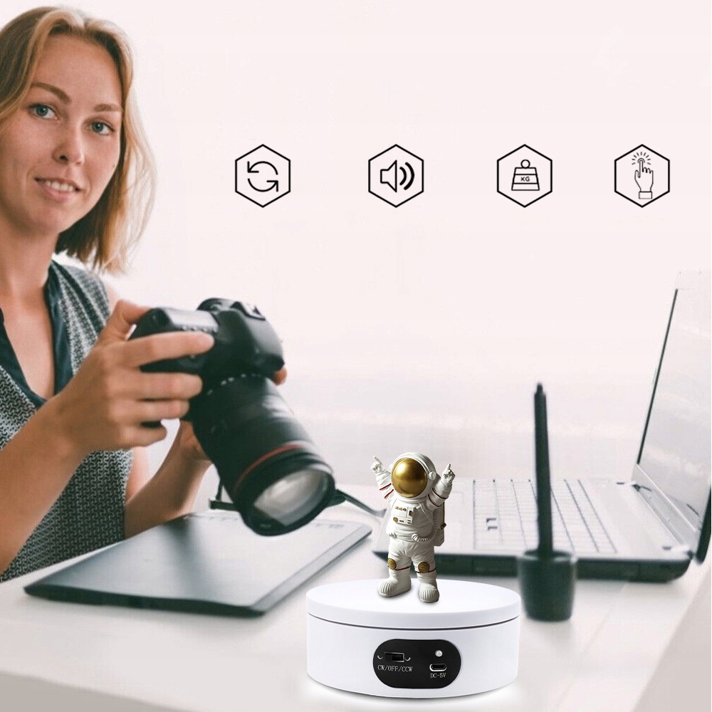 ► Электрическая вращающаяся стойка 360 градусов Автоматическая ротационная платформа с не -скользящими прокладками, Usbressive зарядка