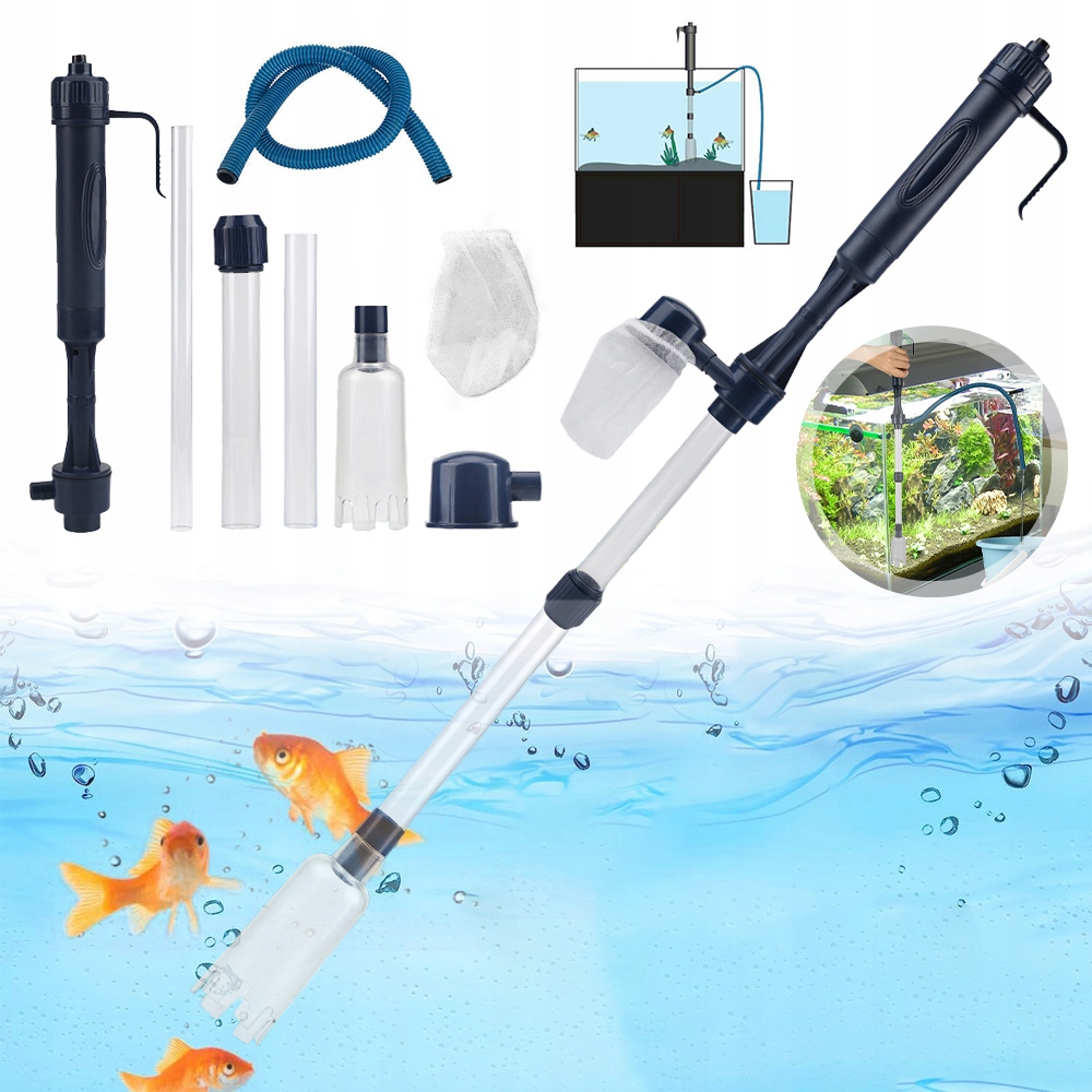 🐡🐡Эффективный сифонный насос: Аквариумный пылесос оснащен эффективным сифонным насосом, который обеспечивает эффективную работу, упрощая уборку грязи и рыбных отходов.