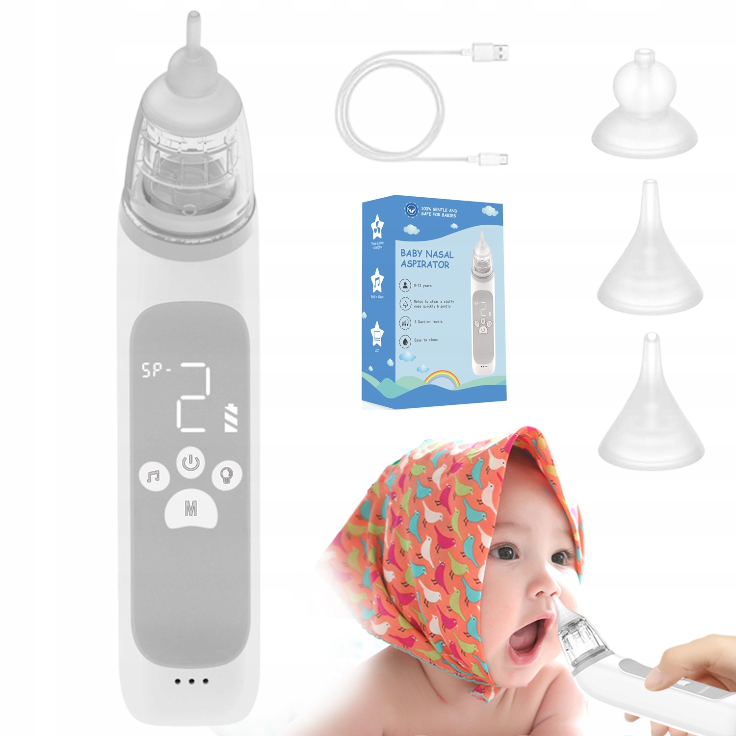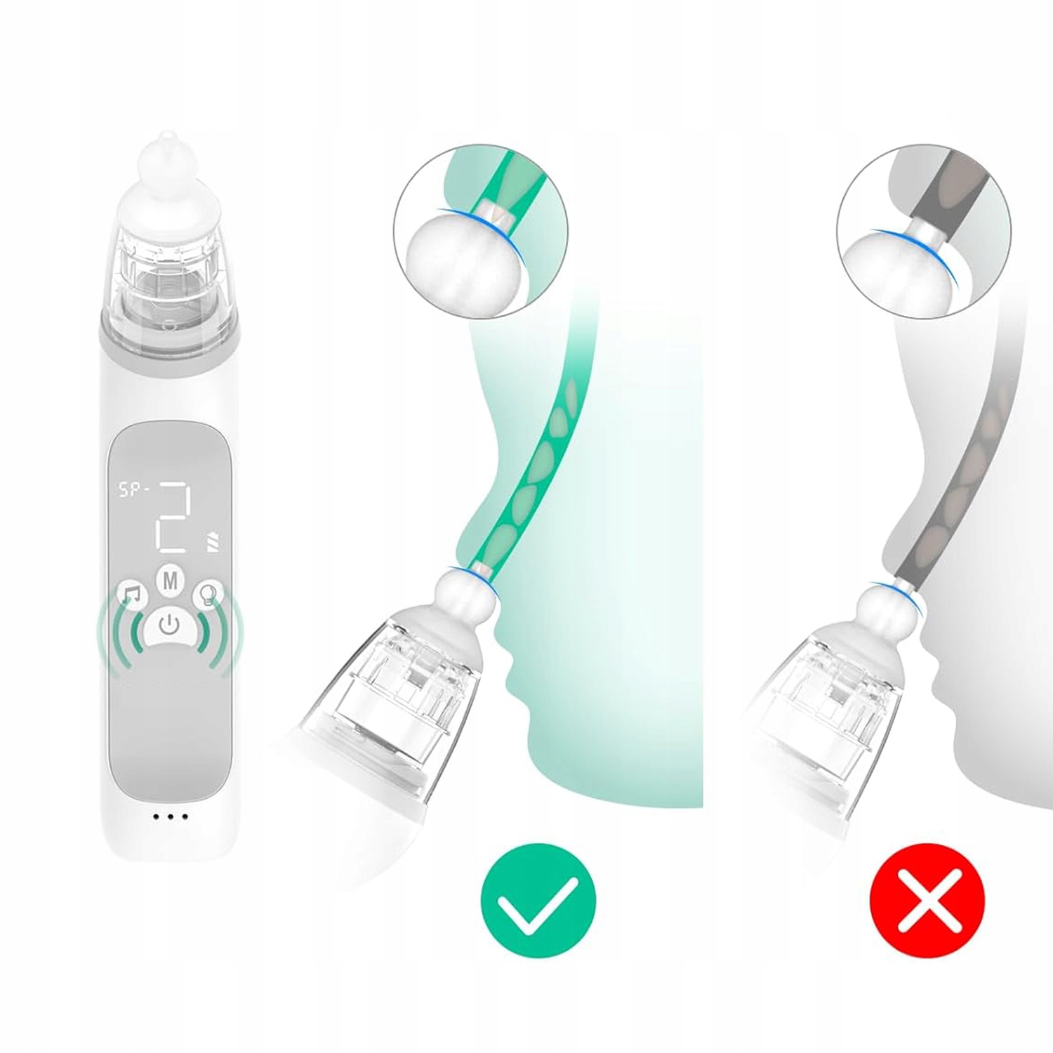- Он безопасно и комфортно очищает секрецию носа, когда у вашего ребенка есть душный нос. Подходит для младенцев и детей в возрасте 0-12