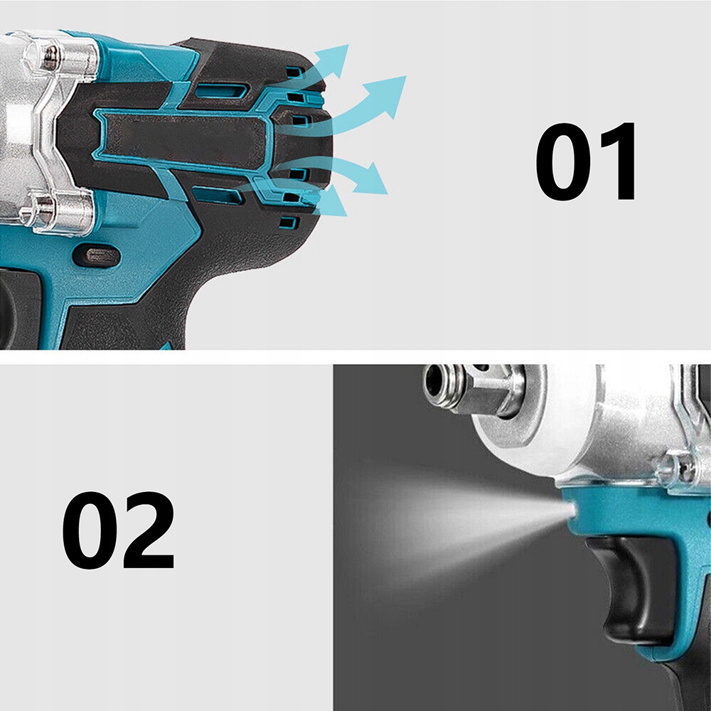 💡💡 Беспроводной ключ 21 В, питание от аккумулятора высокой мощности двигателя. Оснащен прочной алюминиевой головкой, хорошей герметизацией и поворотной головкой из вольфрамовой стали.