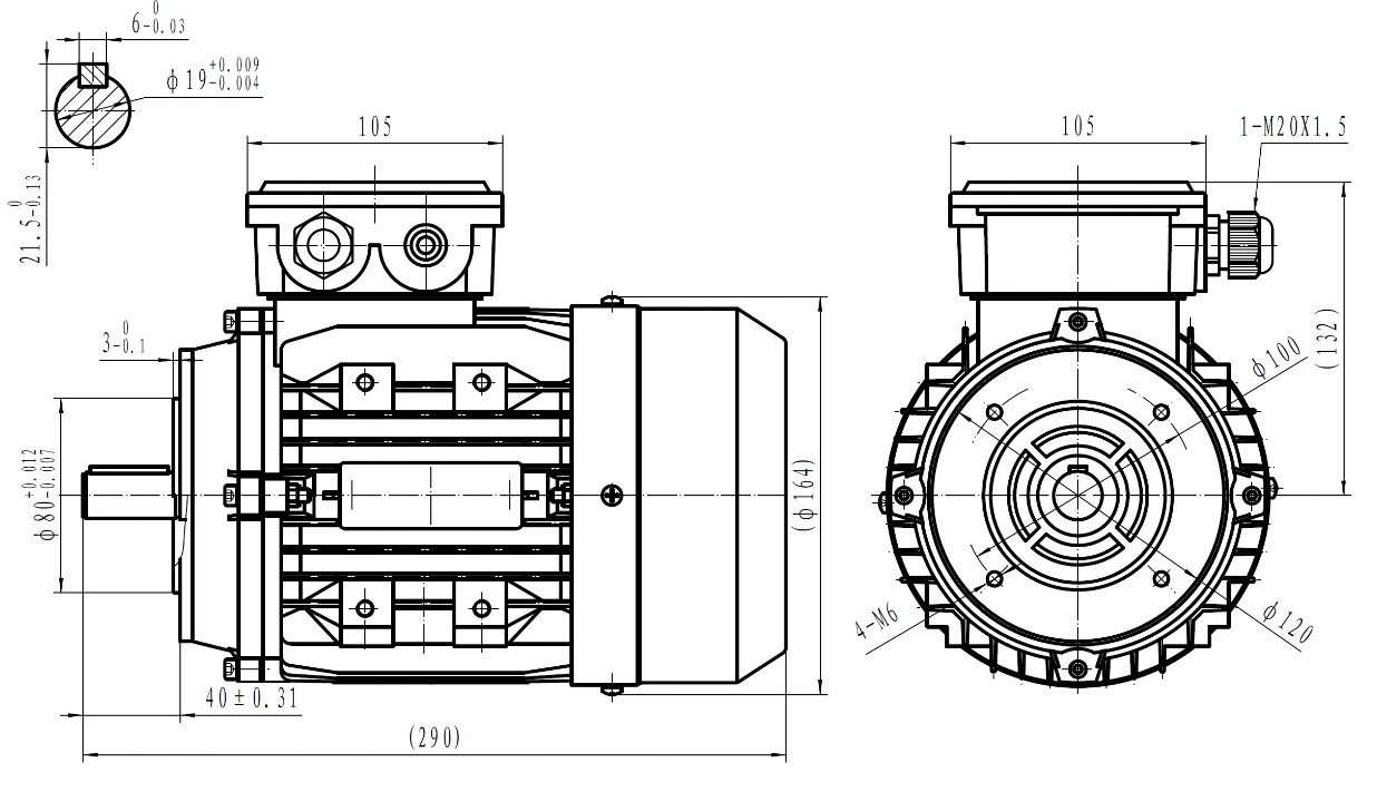 Электрическая электрическая среда MS 0,55 кВт 1400 об / мин. 80 B14