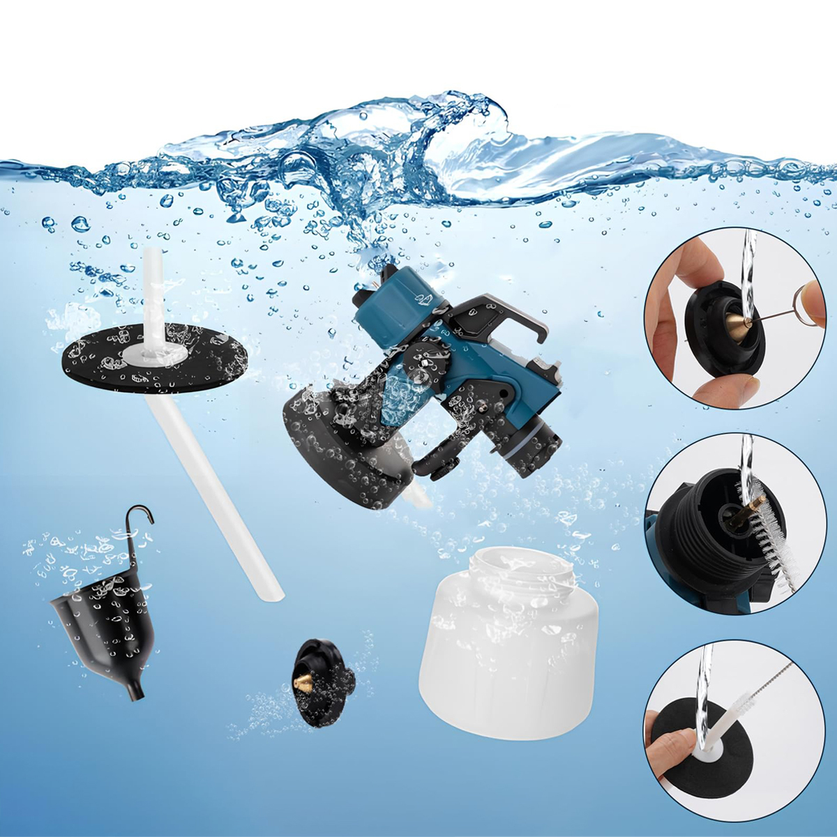 Легко чистить — просто очистите сопло и контейнер, затем с помощью чистящей кисточки и иглы удалите остатки краски из сопла, предотвращая его засорение.