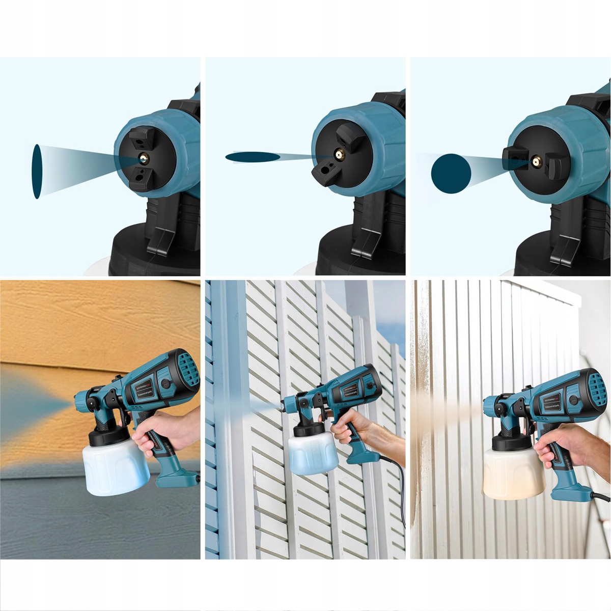 Этот краскораспылитель может регулировать 3 различных режима распыления (горизонтальный, вертикальный и круговой), чтобы адаптироваться к форме распыляемого объекта.